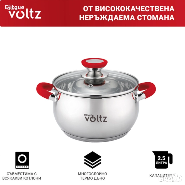Тенджера Voltz, Червени дръжки, Неръждаема стомана