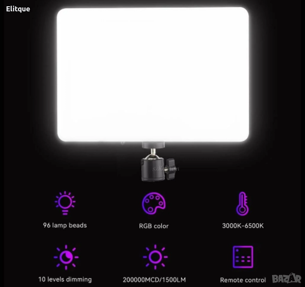 Брой LED диода: 96; Цветова температура: 3000K-6000K; RGB цветове: Да; Нива на управление на яркостта: 10; Управление: Дистанционно.