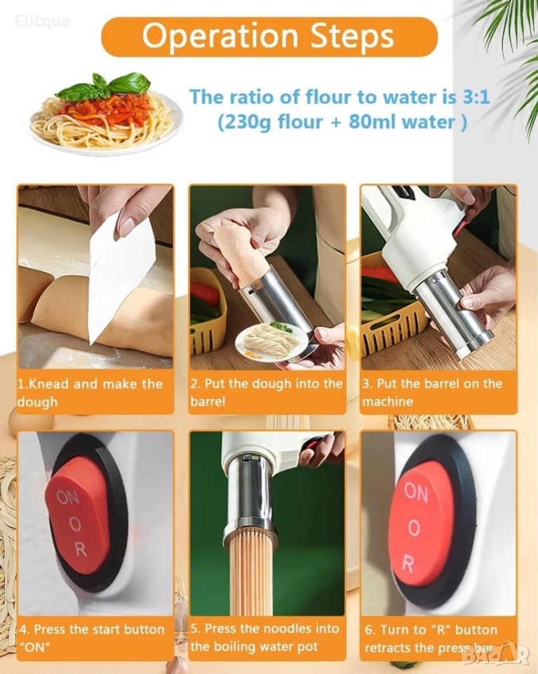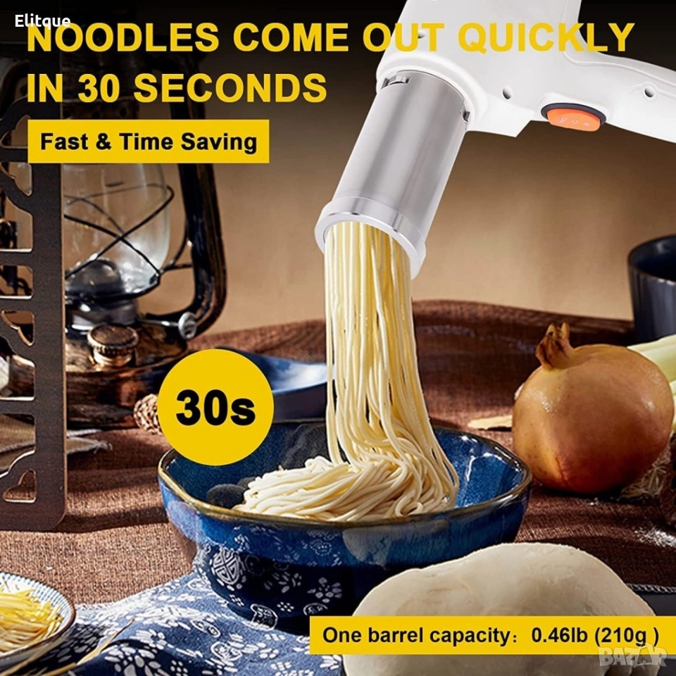 Този преносим автоматичен уред за приготвяне на паста е перфектен за всеки, който обича да готви вкусна паста бързо и лесно. Независимо дали сте у дома, на къмпинг или в каравана, този уред ще ви позволи да приготвите любимите си паста ястия с минимални усилия. Цвят на продукта: Бял; Телескопична скорост без товар: 5 mm/s; Номинално напрежение/мощност: 12 V-45 W; Капацитет на литиева батерия: 1500 mAh; Режим на управление: Бутонен превключвател; Време за зареждане: 2-3 часа; Налично пълно зареждане: Около 50 пъти; Номинален капацитет: 200 грама; Напрежение: AC 100-240V 50/60Hz.