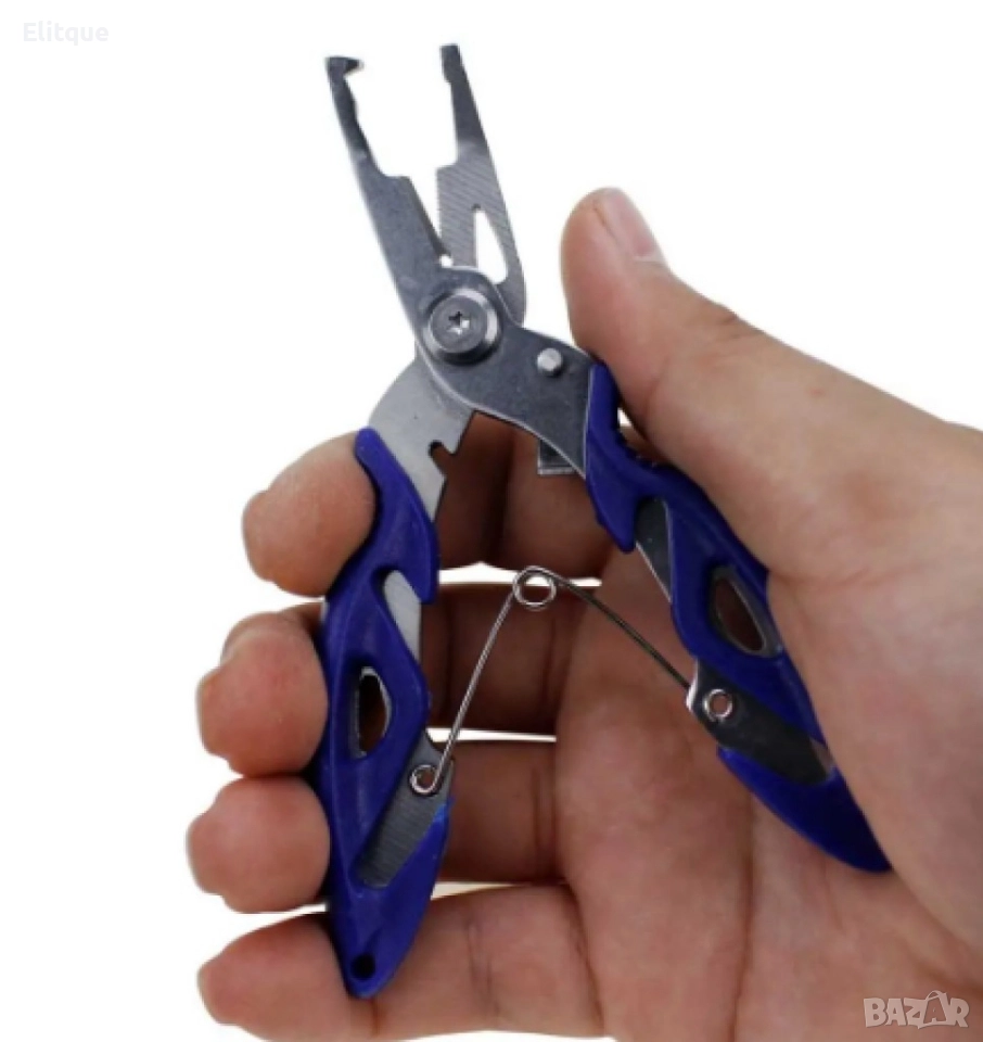 Материал: Неръждаема стомана; Цвят: Метален със сини елементи; Функции: Рязане, затягане на въдици, бърза смяна на куки, осветление; Ключалка: Да, самозаключваща се катарама.