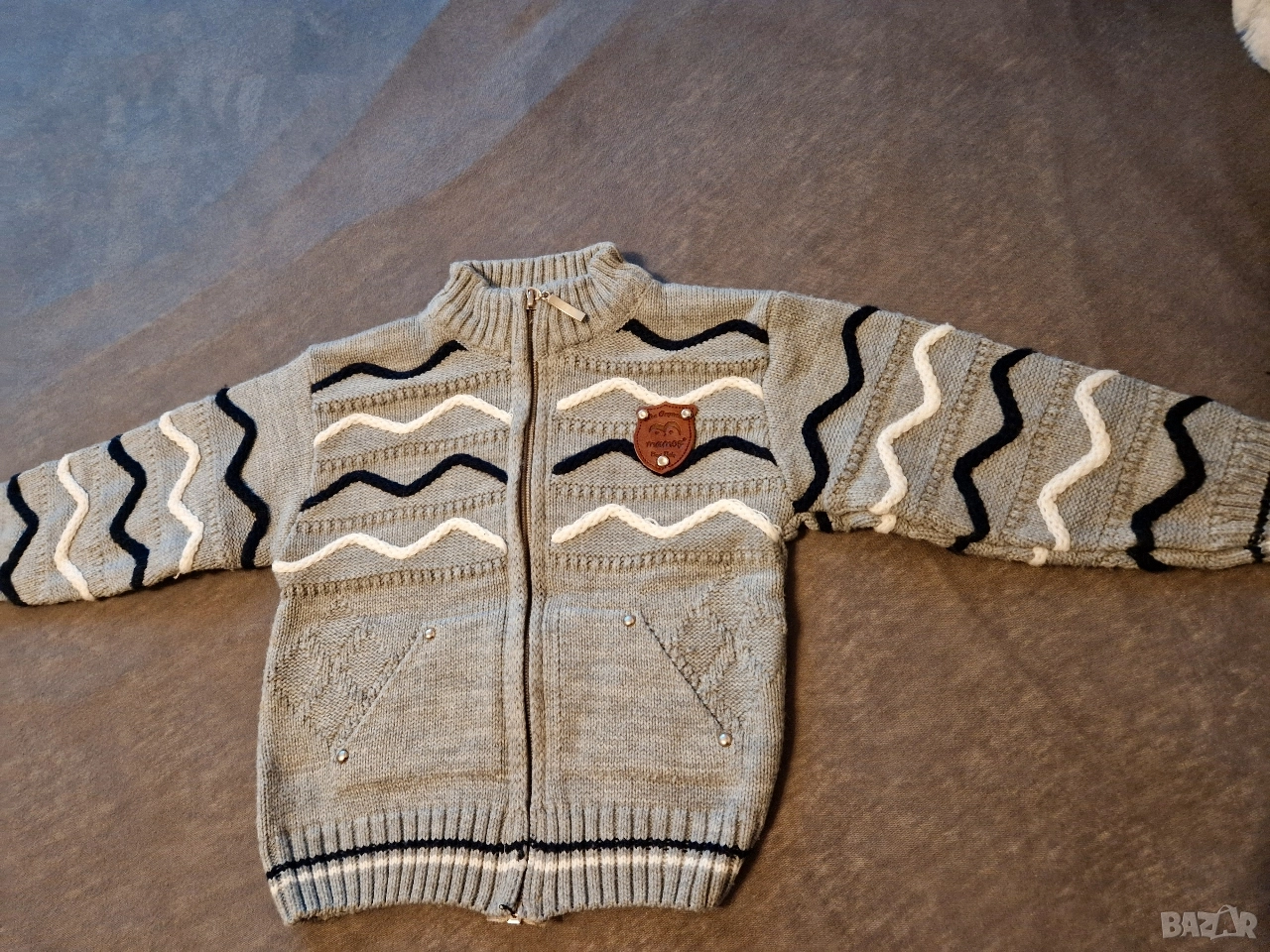 9-12м 80см Жилетка с дълъг ръкав, плетиво, сива, без следи от употреба → Обява 52862819