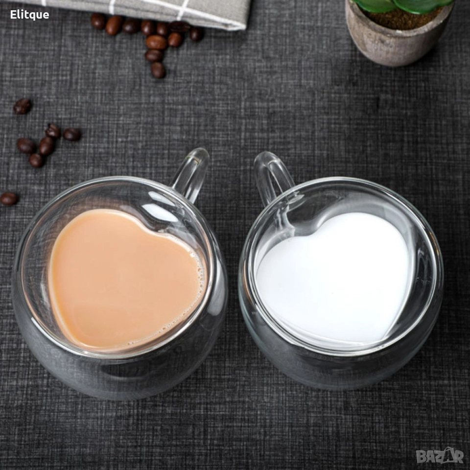 Двустенна стъклена термо чаша във формата на сърце. ☕❤️?Със своя оригинален и стилен дизайн, тази чаша се превърна в един истински ТРЕНД! Това е чашата, която трябва да имаш, а защо да не са две - за Теб и Твоята половинка. Чашката е и идея за подарък за всеки човек, когото обичате! Пийте горещ чай, шоколад или вкусно горещо еспресо - с мъничко любов, поднесена в подобаваща чаша с ефектен дизайн на сърце!
