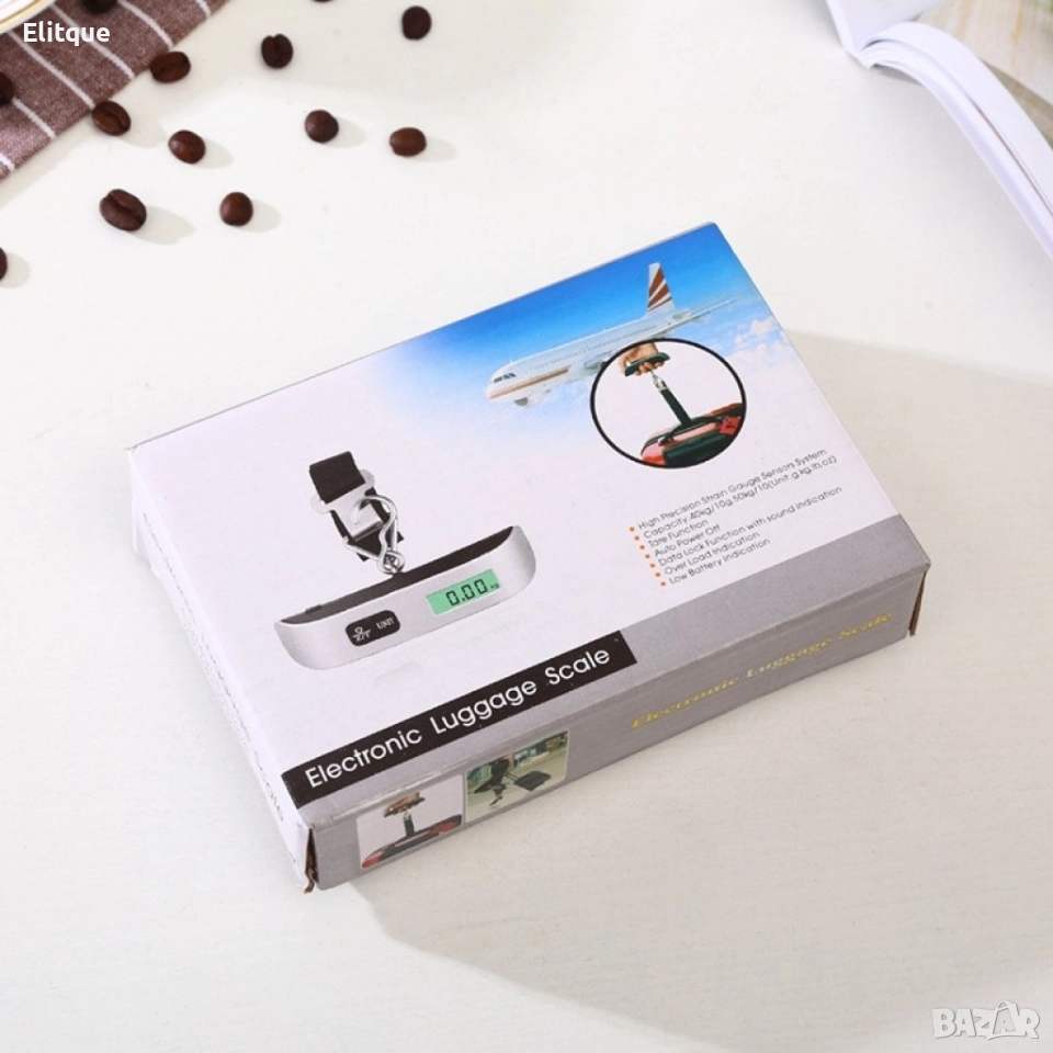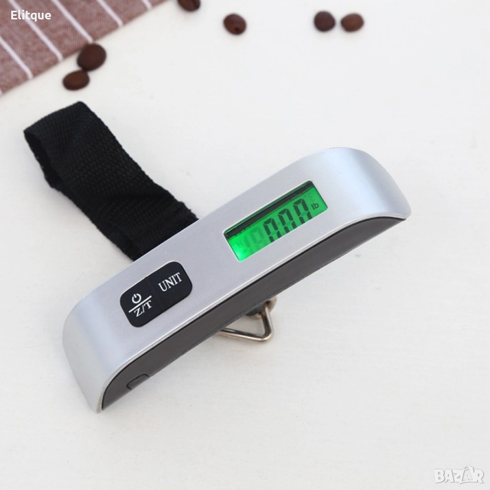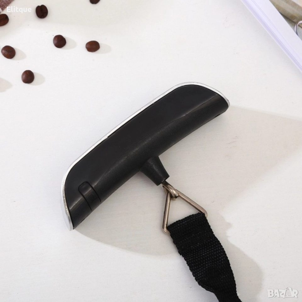 Преносима и компактна електронна везна за измерване на багаж и товар до 50 кг. Т-образна удобна за захват форма с гъвкава каишка и метална връзка. Цифров LCD дисплей, показващ тежестта, който е видим и през деня и през нощта.