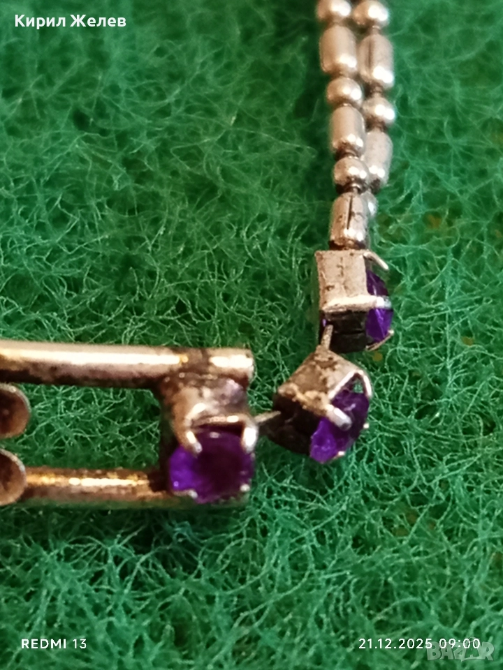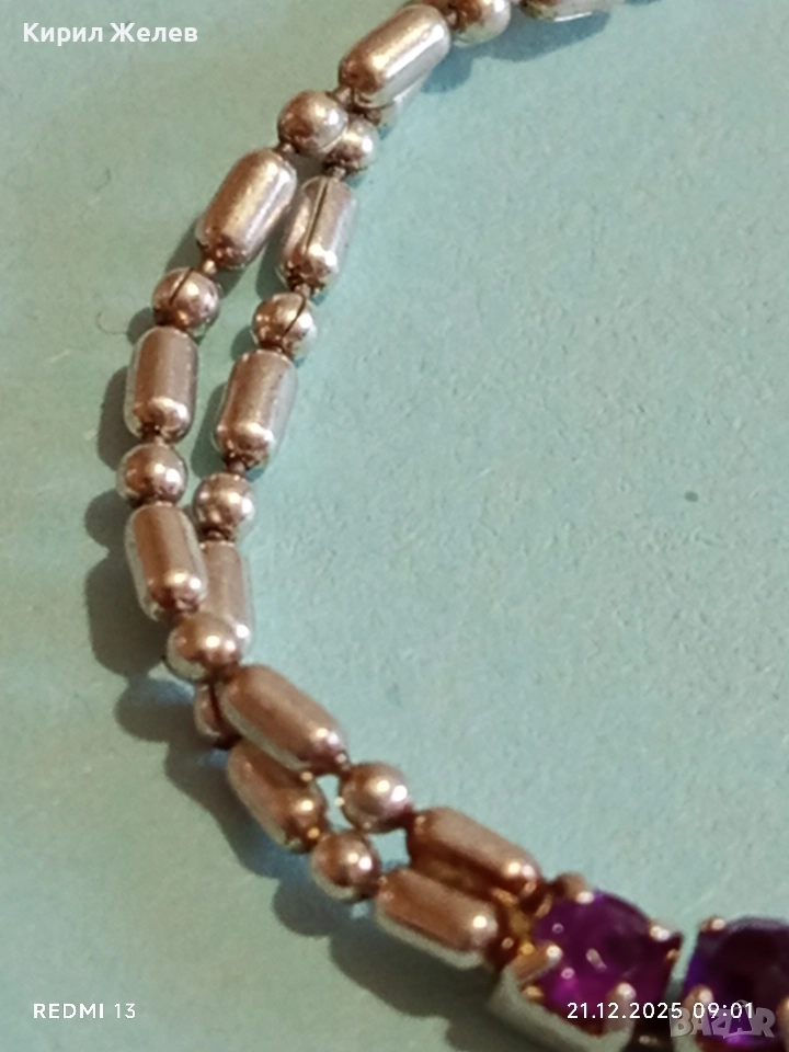 Елегантна сребърна гривна с двойна верижка и виолетови камъни стил и класа 40070