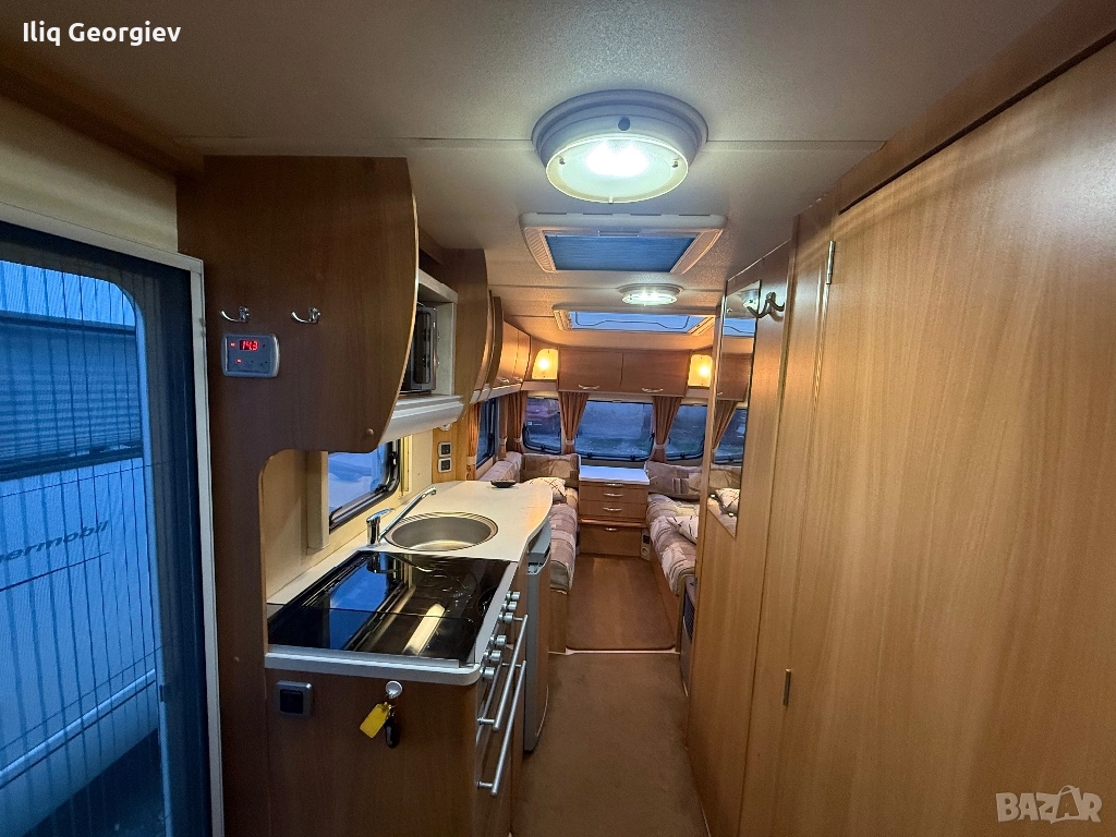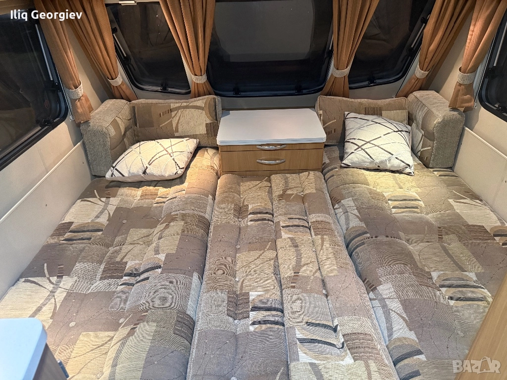 АCE JUBILLEE VICEROY-5-местна-FACE LIFT КАТО НОВА, MOVER, АIR ФОРСЕЛТ, аларма, LED осветление, ДУШ КАБИНА, НОВА газовa бутилкa, ключ за стабилизиращите лапи, стъкла със слънчезащитна изолация, резервоар за чиста вода със стойка, резервоар за отходните води с колела, голям шибидах отпред, комарник на врата, щори комарници и пердетa на всички прозорци, новата система на thetford, БАНЯ И ТОАЛЕТНА(с въртяща глава) по средата на каравана което позволява да се използва и от 2те страни, хладилник с голяма камера в горния край който работи на 220v, 12v и газ, отоплителна печка с вентилация(газ+220v), 4 котлона за готве 3 на газ и 1 на ток + фурна и грил, МИКРОВЪЛНОВА ФУРНА, бойлера работи на 220v и газ , сензор за пожар, вградено fast charger зарядно за акомулатора, химическа тоалетна от ново поколение, 2 маси, минибар, нови гуми, антивиброационен теглич, антена с усилвател, място за TV, табло за управление с дисплей, индикатор за заряда на акомулатора, ХИДРОФОРНА помпа, бърза връзка за вода с възможност за свързване към стационарна мрежа, кабел за включване в 220v стабилизатори за гумите, 220v инсталация и много други. . . Готова за къмпингуване. Топ състояние! В предния край диваните стават на голяма спалня 2. 20м/2. 00м, отзад още 2 дивана с масичка по средата, могат лесно да станат на голяма спалня с подматрачна рамка по средата която се издърпва, над тях пада двуетажно легло със стълбичка, прегради и матраци, подходящо за деца, разделителна ВРАТА която разделя караваната на 2 помещения, Караваната в основата си е покрита с оригиналния си балатум, а мокета е във формата на 3 големи стелки(най практичното от всички караванини), което я прави много лесна и удобна за почистване. Много практично и удобно разположение което позволява на голямо семейство да се разположи + обемния гардероб , кухненско оборудване, аларма, дизайн на интериора с заоблени детайли, 3ти стоп, сензор за дим. Луксозен дизайн, Готова за къмпингуване! ! ! ИЗПРАНА/