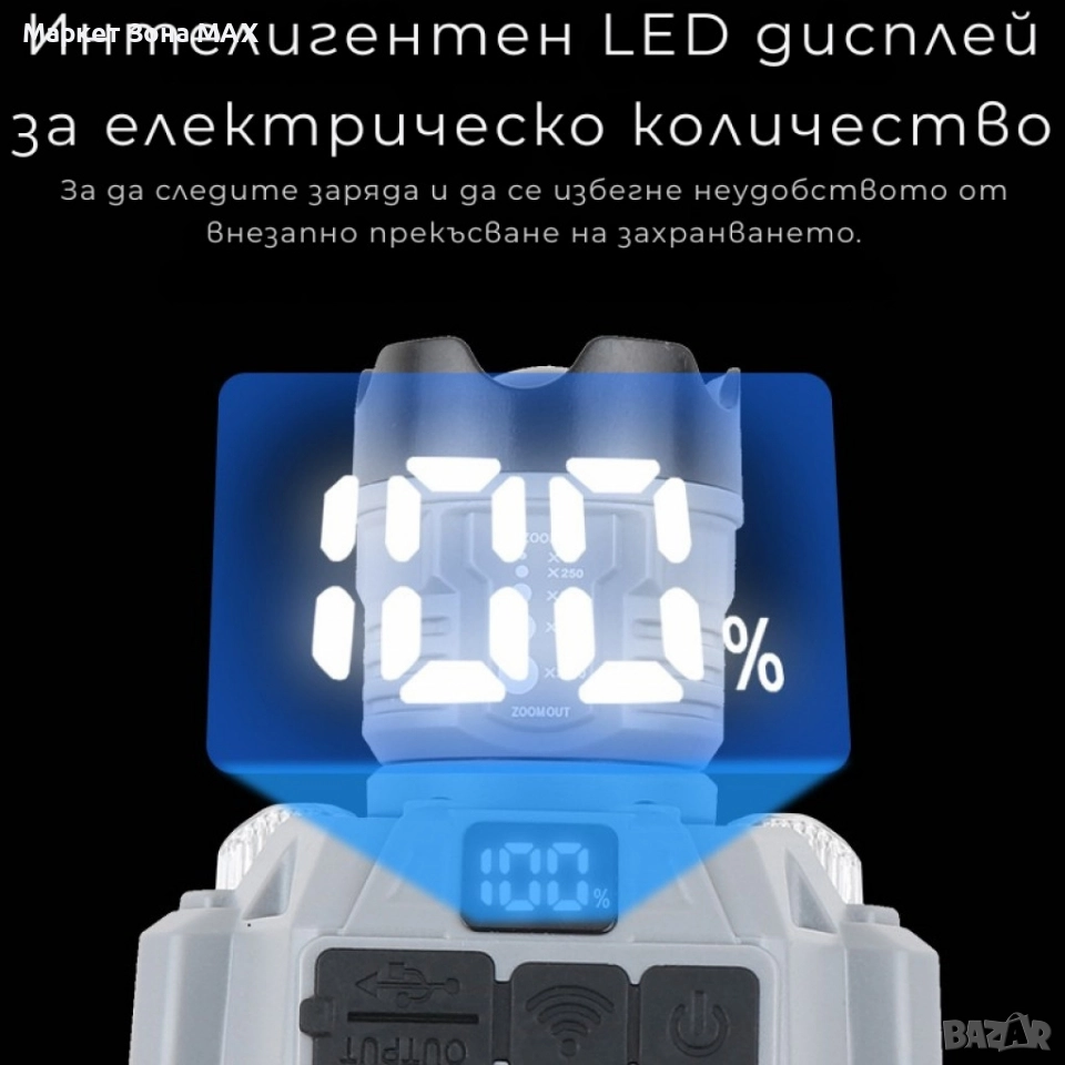 Захранване: Вградена презареждаща се батерия, зареждане чрез Type-C/USB.