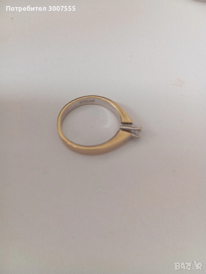 Дамски пръстен от чисто 14к злато с диамант.Тегло ~4,25гр. Диаманта е ~0,20карата. Пръстена е на известната турска фирма Koçak. ЦЕНА 1500лв