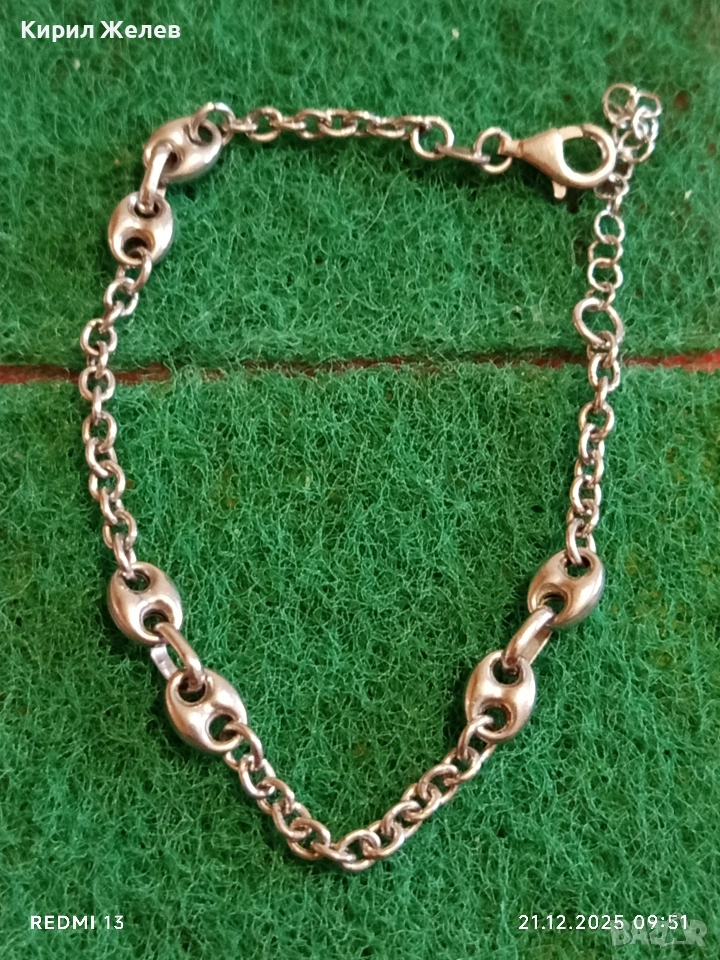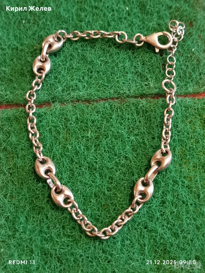 Красива сребърна гривна с плетка тип Gucci Chain ювелирна изработка нежна 35512