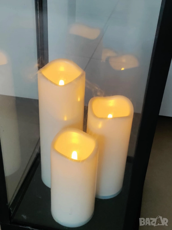 Соларна лампа - LED, фенер в черно с 3 бр. свещи → Обява 52863457