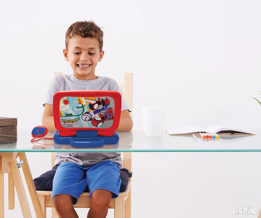 Ако търсите начин да добавите елемент на образование към игровите си дейности, то този детски лаптоп е перфектният избор. С реалистичен вид, истинска мишка и LCD екран с размери 5.1 x 9.7 см, той привлича всички малки ентусиасти, които искат да се доближат до света на възрастните. С 124 активности от различни области, лаптопът е проектиран да направи ученето забавно, да тренира паметта, скоростта и да подобри общите умения. Включени са математически дейности, където децата учат не само числа, но и основни числови операции. Двуезичните уроци им представят букви, думи и произношение, а двуезичната клавиатура им дава възможност да опитат да пишат. Играта на игри за памет ще им помогне да тренират логиката си, а музиката не е пренебрегната, където децата определят правилния звук на мелодиите. Лаптопът включва също игри и учене за времето. Образователният лаптоп работи с две 1.5 V AA/LR06 батерии (не са включени). Отделението за батерии, разположено под устройството, трябва да се отвори с отвертка (не е включена). Образованието наистина е най-добрата инвестиция за бъдещото развитие на вашето дете. Насърчавайте тяхното естествено любопитство и желание за учене, и им давайте образователни стимули още от ранна възраст. Вие допринасяте за стимулация на мозъка и развитие на умения. Освен това, придобиването на езикови умения в ранна възраст е по-лесно и естествено от всякога. Характеристики: Образователен двуезичен лаптоп на английски и български език със 124 дейности (62 на всеки език) за забавно и интерактивно обучение!