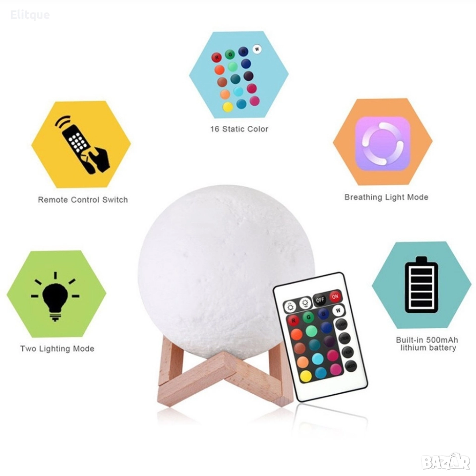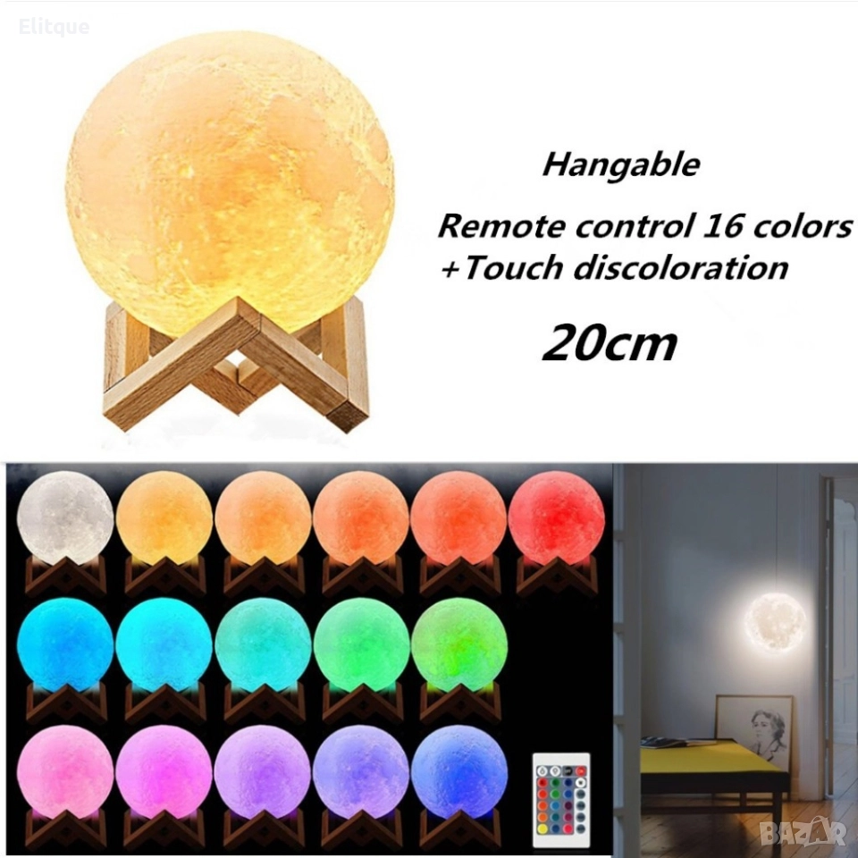 LED 3D лампа-луна с дистанционно управление TV848