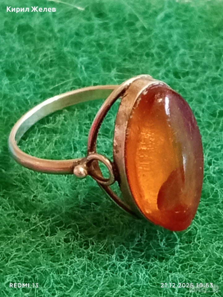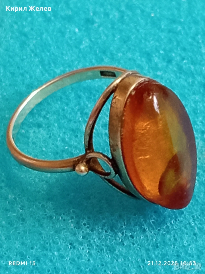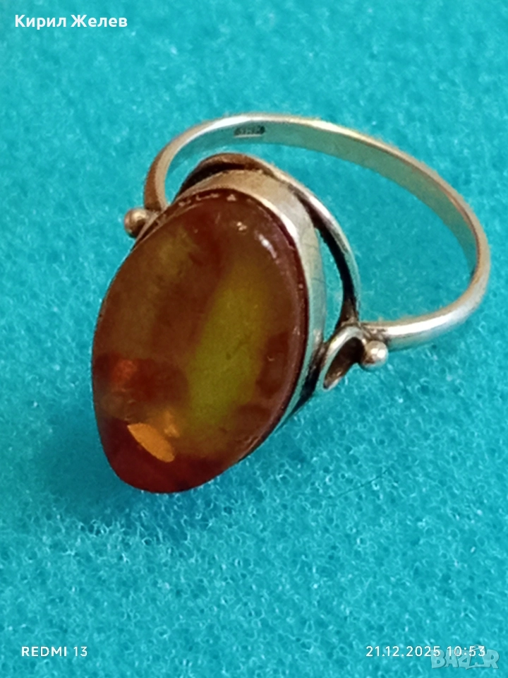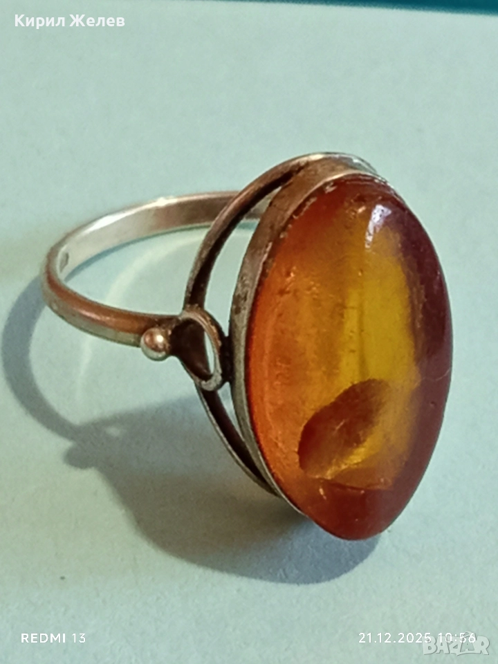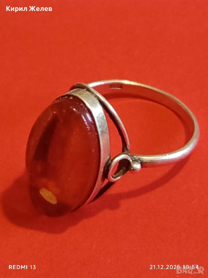 Винтидж сребърен пръстен с ювелирно фасетиран КЕХЛИБАР майсторска изработка 52465