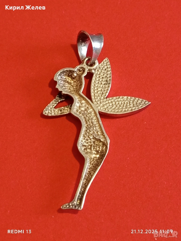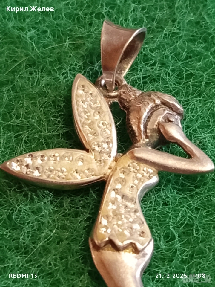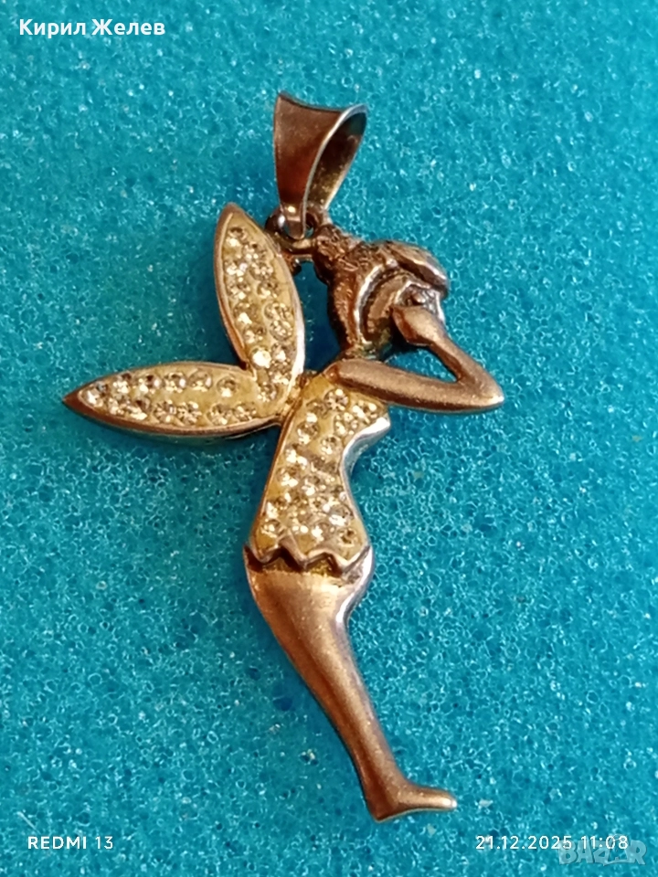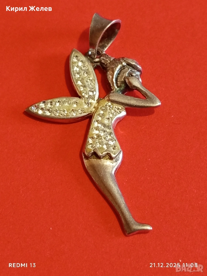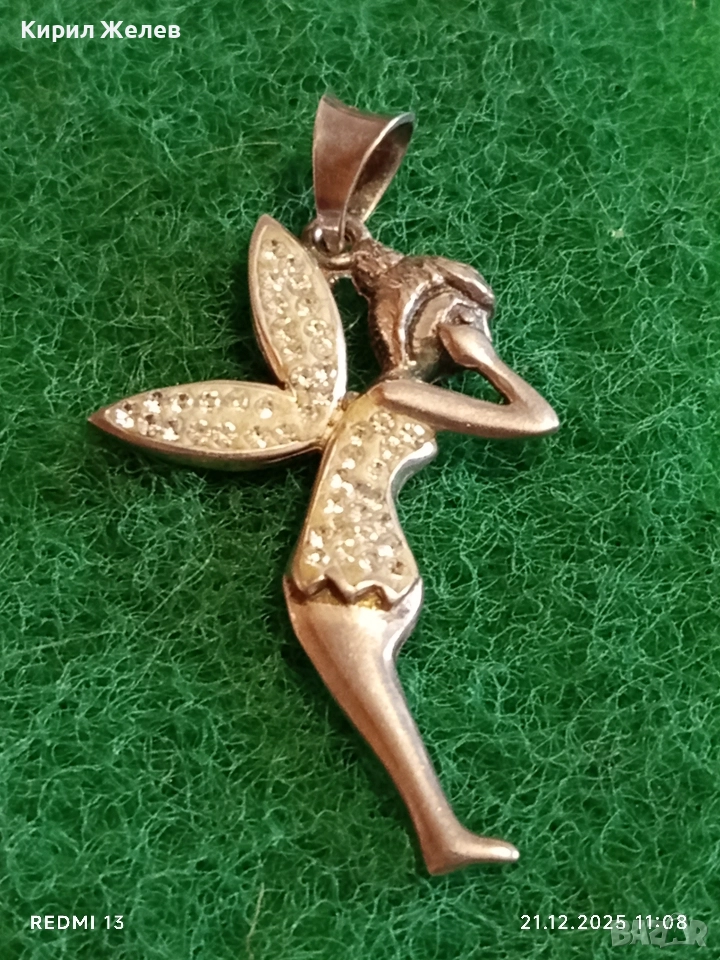 Сребърен медальон с формата на фея Tinkerbell Swarovski инкрустирана с блестящи кристали 18654