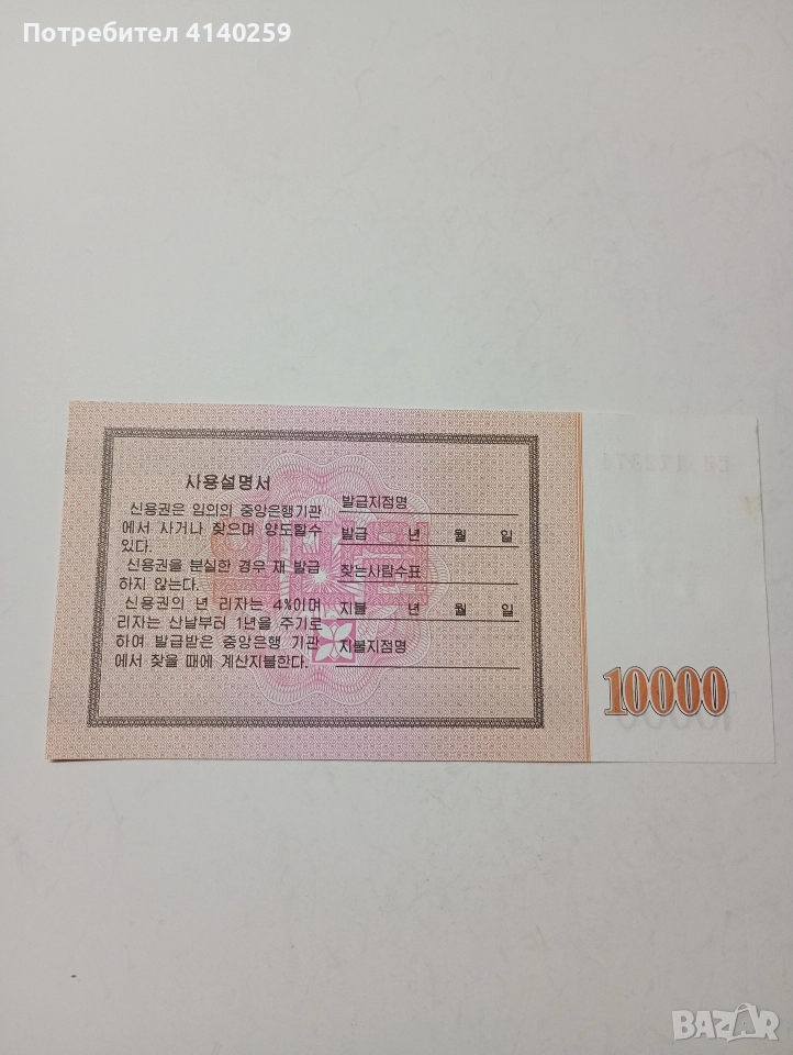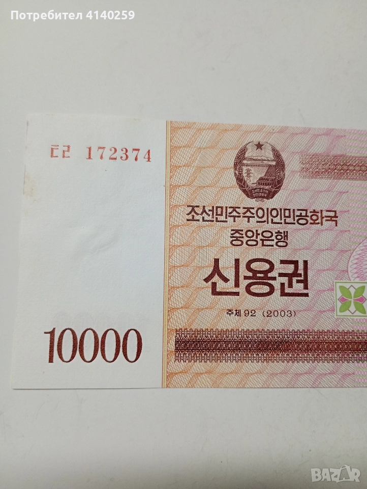 СЕВЕРНА КОРЕЯ БАНКНОТА 10000 ВОНА 2003 Г → Обява 52864117