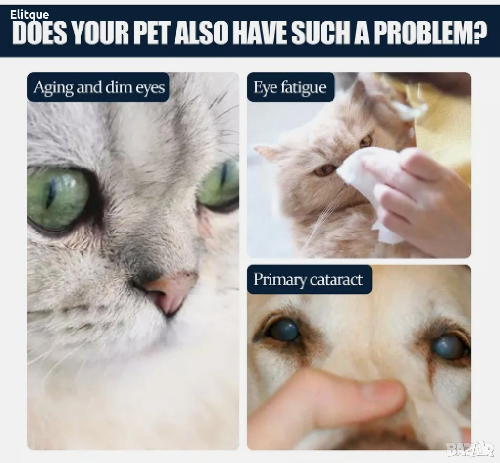 Съставки: Висококачествен перлен хидролизат, орлови нотки, боровинки и други полезни билки; Обем: 30мл; Бутилка с капкомер за лесно приложение; Нежна грижа: Натуралните съставки осигуряват нежна и ефективна грижа за очите на вашите домашни любимци; Превенция и лечение: Капките помагат за предотвратяване и облекчаване на симптомите на алергии, инфекции и сухи очи; Лесно приложение: Бутилката с капкомер улеснява точната и безопасна дозировка; Начин на употреба: Нанесете няколко капки директно в очите на вашия домашен любимец. Използвайте 1-2 пъти дневно или по препоръка на ветеринарен лекар. При необходимост, консултирайте се с ветеринарен специалист за допълнителни инструкции и препоръки.