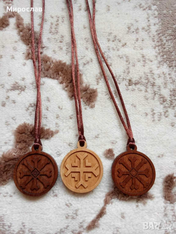 Всички медальони са от масивна дървесина. Като размери са около 2,8-3см. диаметър.