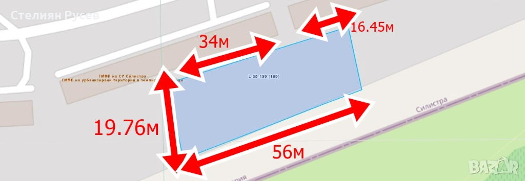 16,45м на ляво от гаража ъгъла
