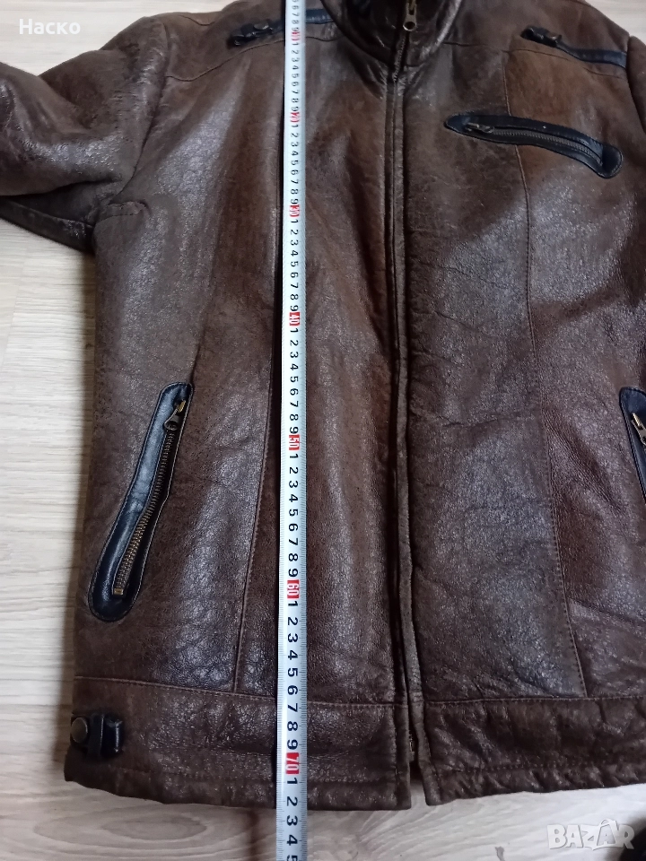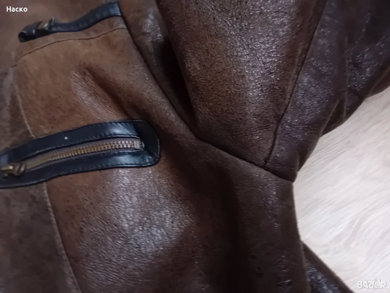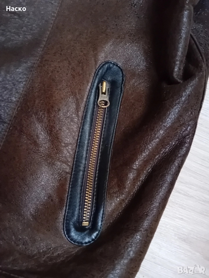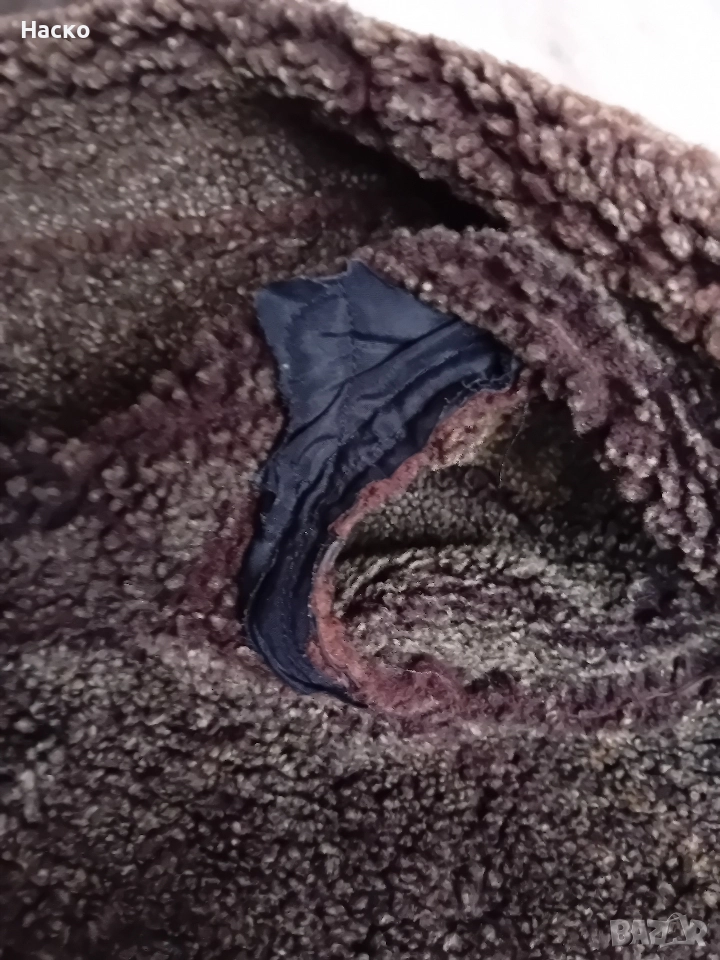 нормални следи от употреба. на дясна мишница е шито 4см. и над десен джоб от вътрешна страна ципа едва се подава, но това се вижда само от вътрешната страна. всичко е снимано.