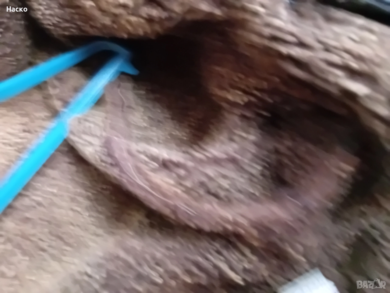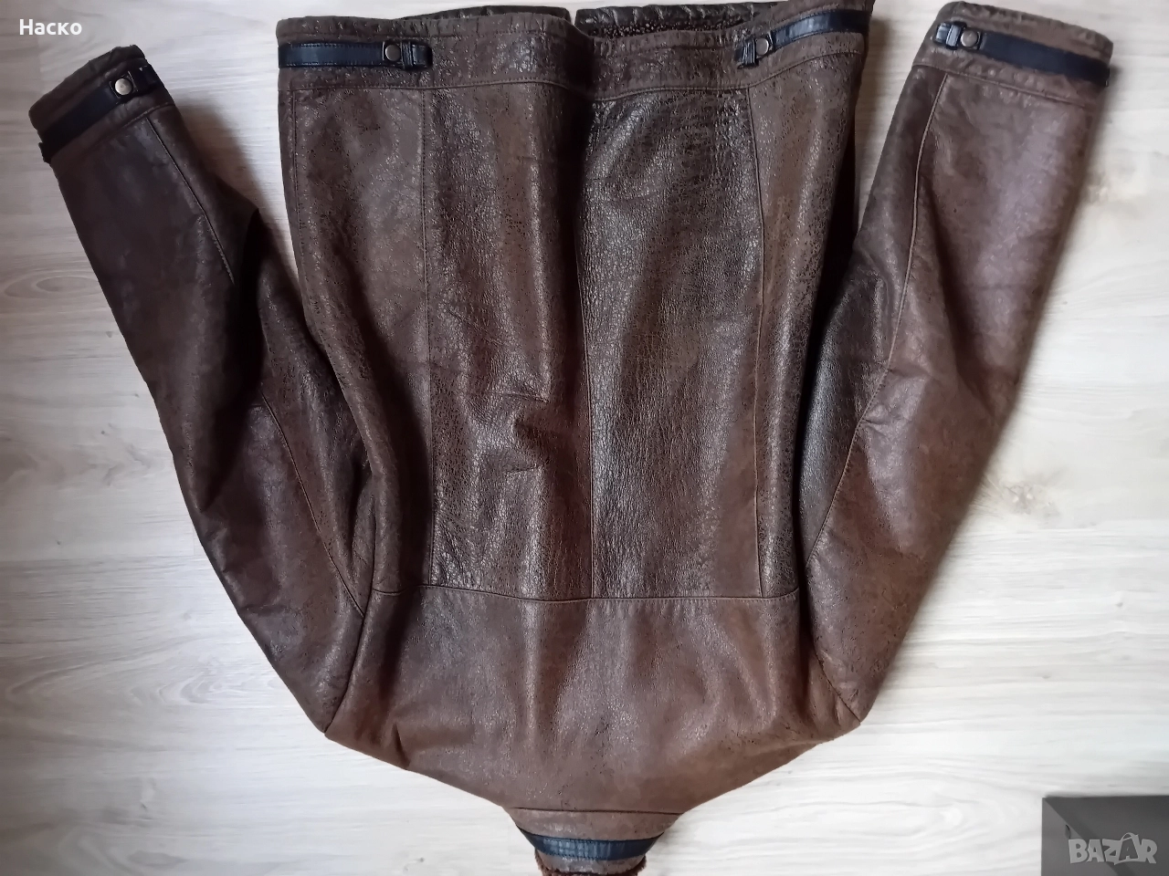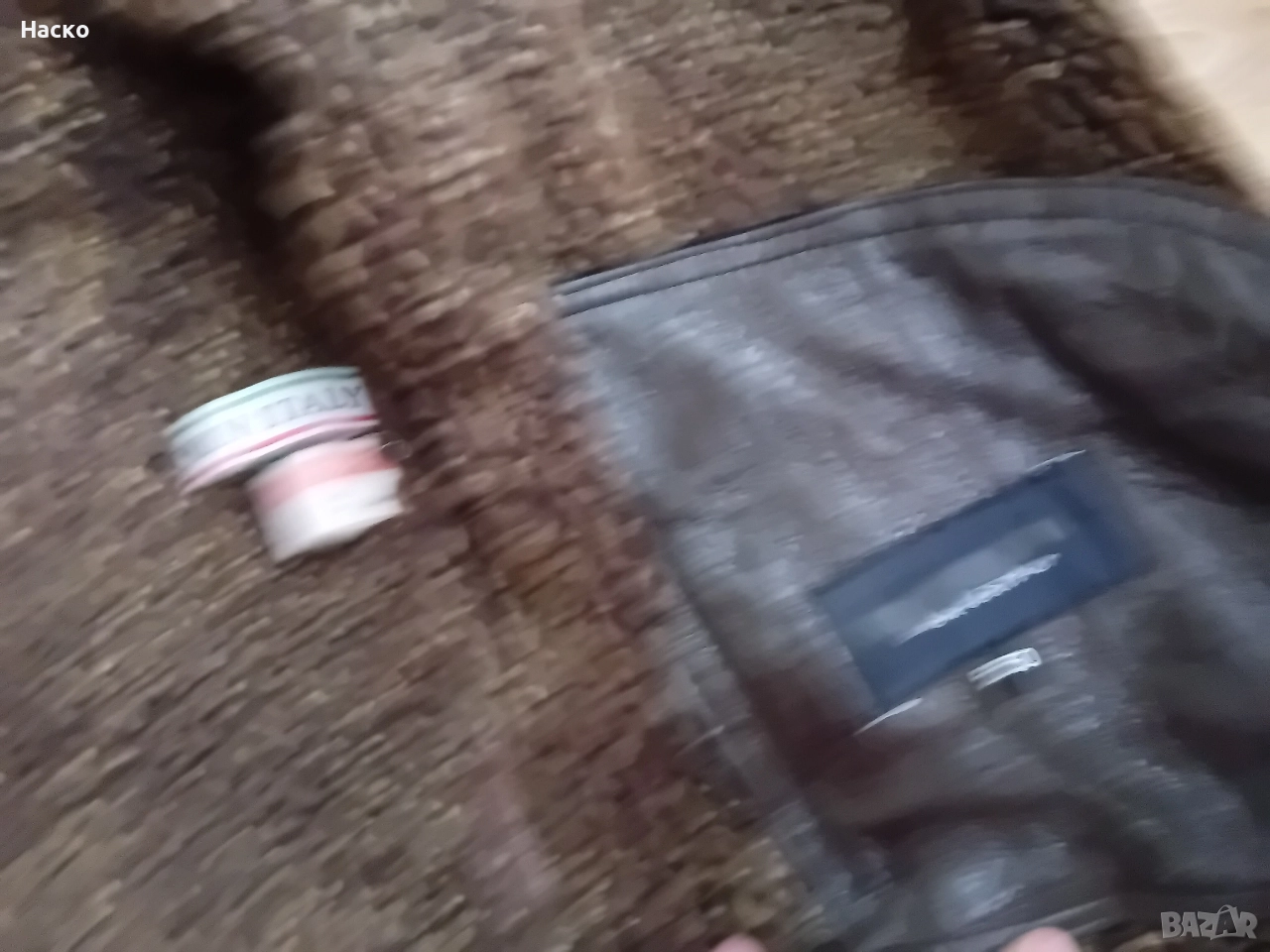 нормални следи от употреба. на дясна мишница е шито 4см. и над десен джоб от вътрешна страна ципа едва се подава, но това се вижда само от вътрешната страна. всичко е снимано.