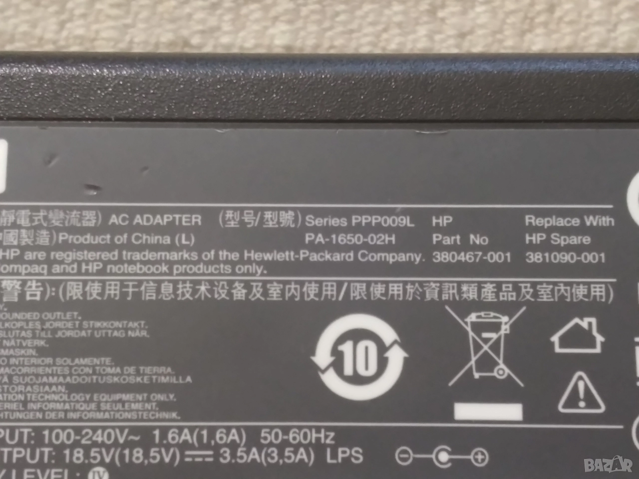 Оригинално зарядно за лаптоп HP PPP009L, PA-1650-02H, снимка 1 - Части за лаптопи - 52865127 Оригинално зарядно за лаптоп HP PPP009L, PA-1650-02H, снимка 2 - Части за лаптопи - 52865127 Оригинално зарядно за лаптоп HP PPP009L, PA-1650-02H, снимка 3 - Части за лаптопи - 52865127 Оригинално зарядно за лаптоп HP PPP009L, PA-1650-02H, снимка 4 - Части за лаптопи - 52865127 1/4