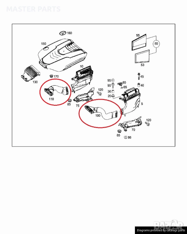 • Приложение: Маркуч въздушен филтър, Въздуховод студен въздух, Маркуч двигател W222 350CDI.