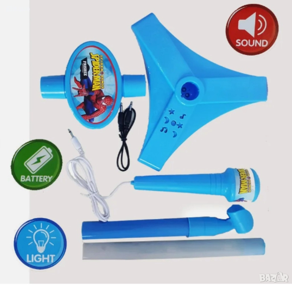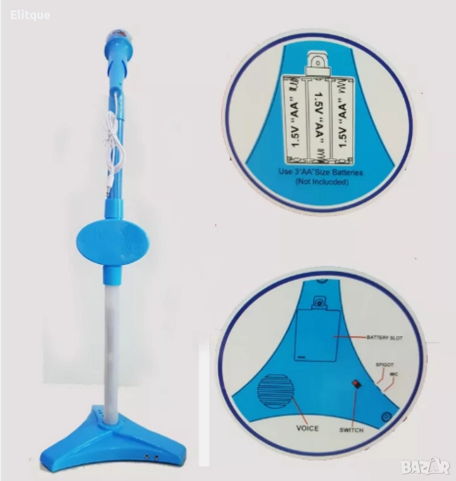 Материал: Здрава пластмаса; Размери: Височина на стойката - регулируема; Съвместимост: Съвместим с мобилни телефони и други устройства с аудио жак; Батерии: Необходими са батерии тип ААА (не са включени).