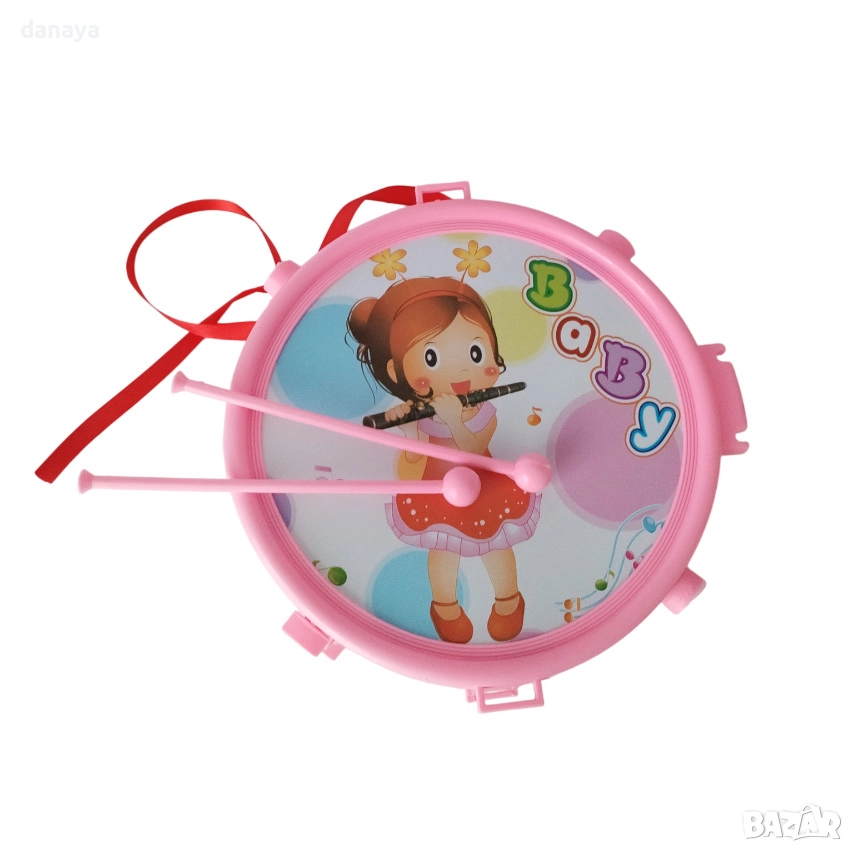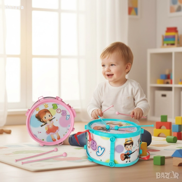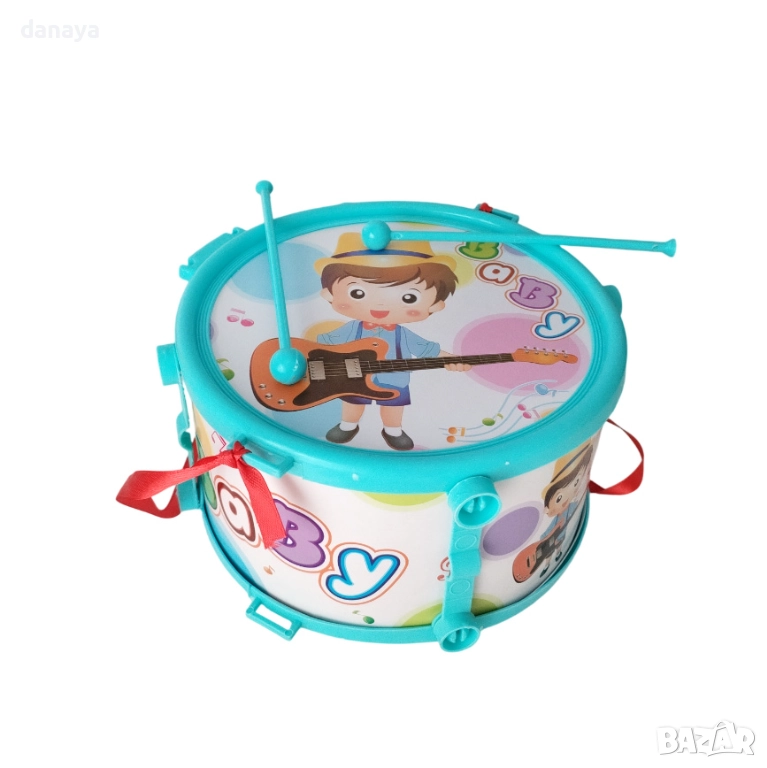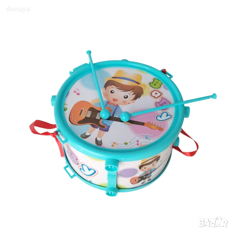 Детски музикален инструмент барабанче. Детско барабанче за деца, музикална играчка, която събужда интереса към ритъма, музиката и звуците още от най-ранна възраст. Цветният дизайн с весели детски илюстрации привлича вниманието и превръща играта в истинско музикално преживяване. Подходящо е както за свободна игра у дома, така и за занимания в детска градина, музикални кътове или ролеви игри.