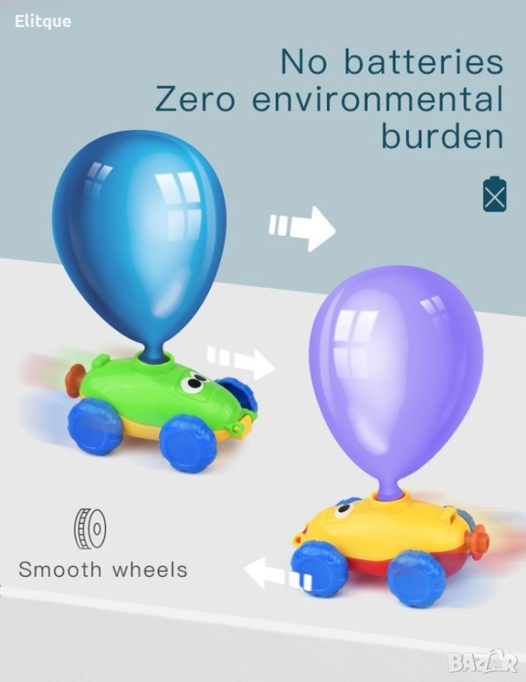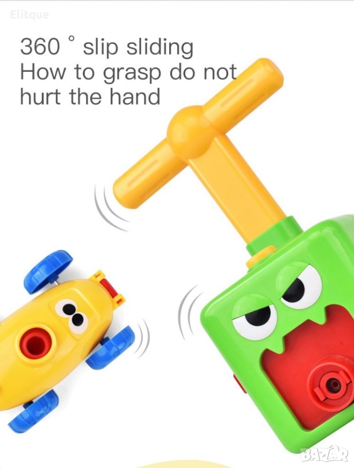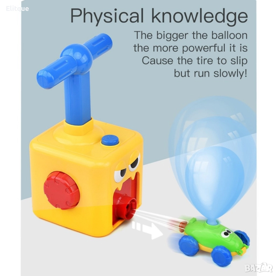 Страхотно ново забавление за малките малчугани с което ще се потопят в света забавата и новата емоция. С иновативната играчка, те ще могат освен да изживеят страхотно забавление, също така и да развият своите умения и нови качества. Този продукт представлява фигурка, която е функция на помпа и след надуването на балона тя изстрелва количката в движение.