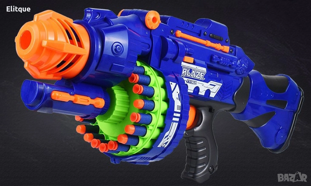 Готови ли сте да повишите нивата си на адреналин? Представяме ви ръчния пистолет снабден с 20 меки патрона. Пълнителят остава прикрепен към бластера, което го прави бърз и лесен за презареждане, така че в играчите да могат да поставят повече стрели, без да го свалят.