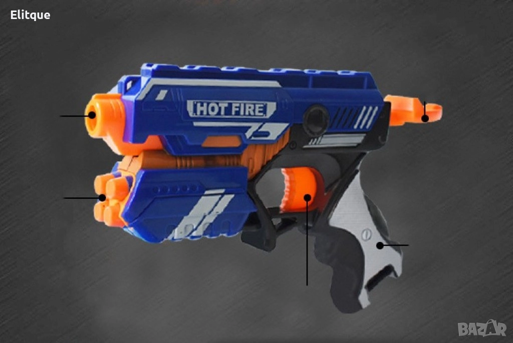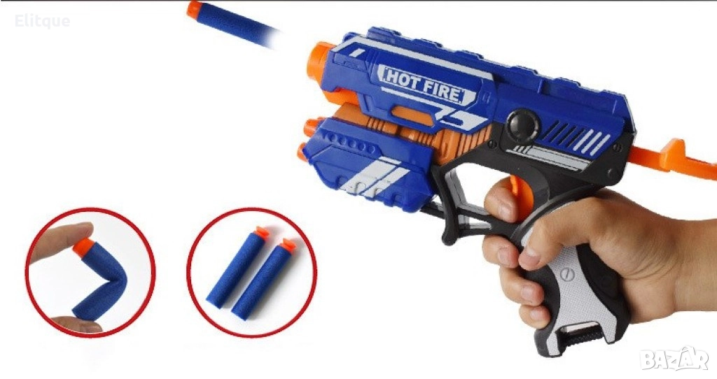 Готови ли сте да повишите нивата си на адреналин? Представяме ви ръчния пистолет The HOT FIRE снабден с 10 куршума, които са меки. Приготви се за страхотна мисия и бъди победител на бойното поле с детския пистолет.