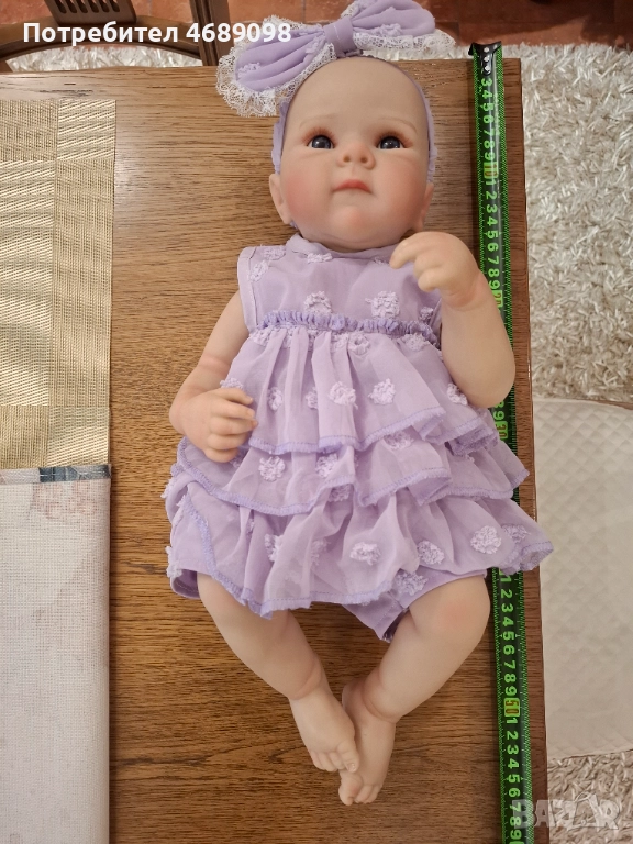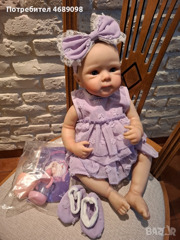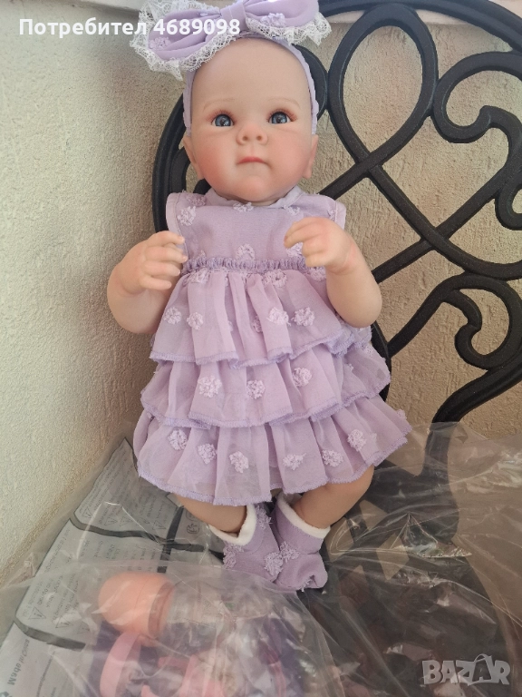Реалистична кукла с цяло тяло ,може да се къпят. Тя е с размери на новородено и лесно може дрехите да се сменят с други. Към куклата има шише за хранене ,памперс и акт за раждане.