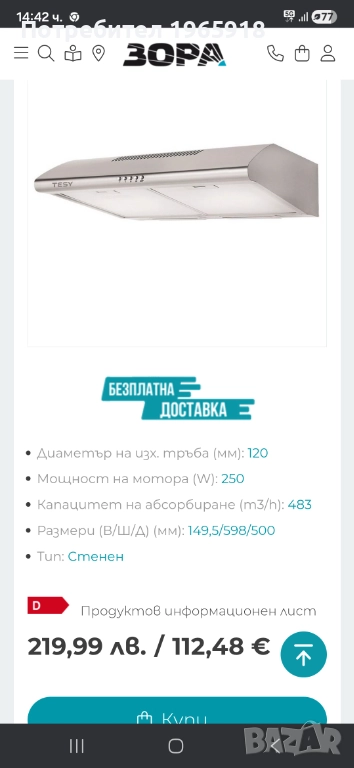 Продавам напълно работещ абсорбатор TESY. Купуван е за 220лв.