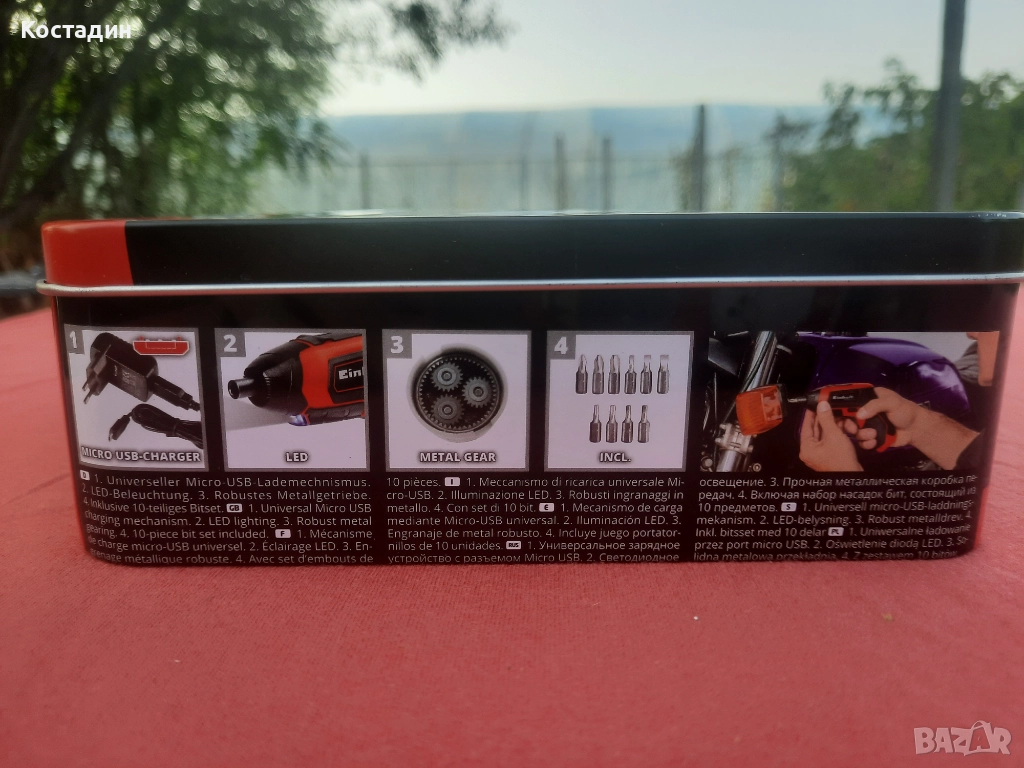 дизайн и мека ръкохватка. Акумулаторната отвертка е оборудвана с комплект от 10 бита и следователно е готова