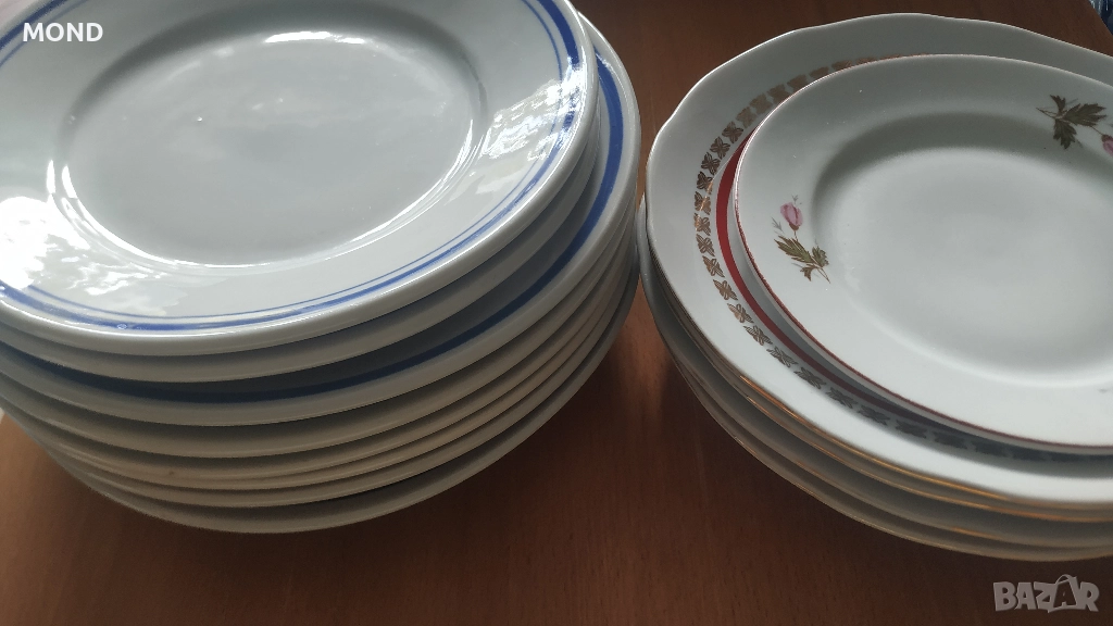 Продавам компелт от чинии произведени във Велико Търново и Разград още през социализма. Всички са в отлично състояние, повечето са държани на склад в кашон и не са ползвани.