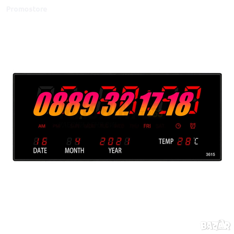 Голям LED стенен електронен часовник с календар и термометър, 36 см Показва час, дата и температура.