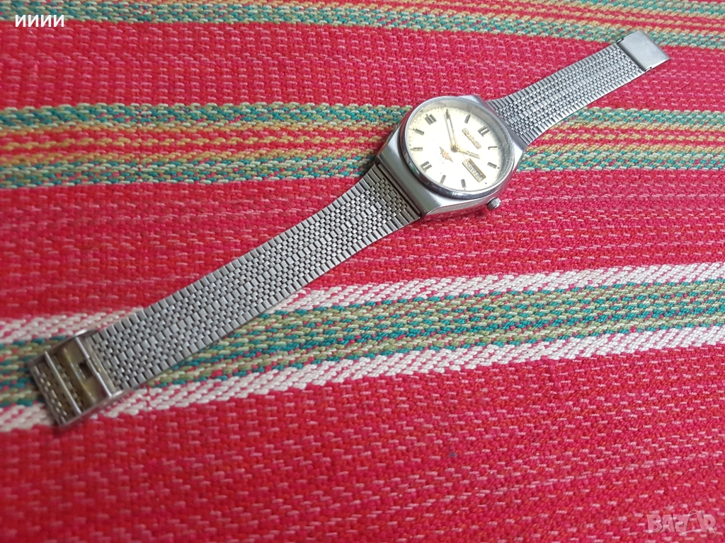 Оригинален часовник, работи точно без да спира и сменя датата коректно, противоводен.