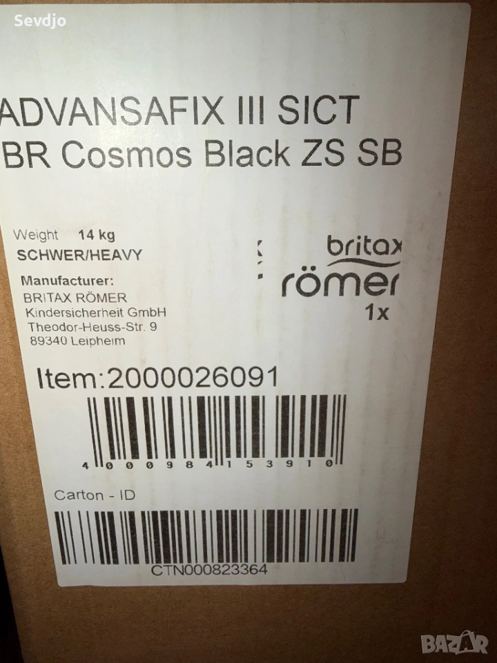 Столче за кола ISOFIX Britax Romer Advansafix III SICT Cosmos Black, 9-36 кг, Черно
