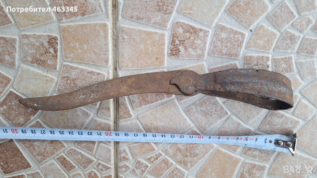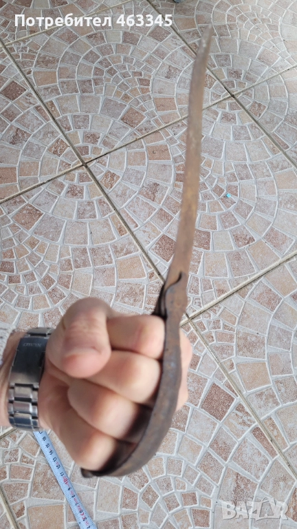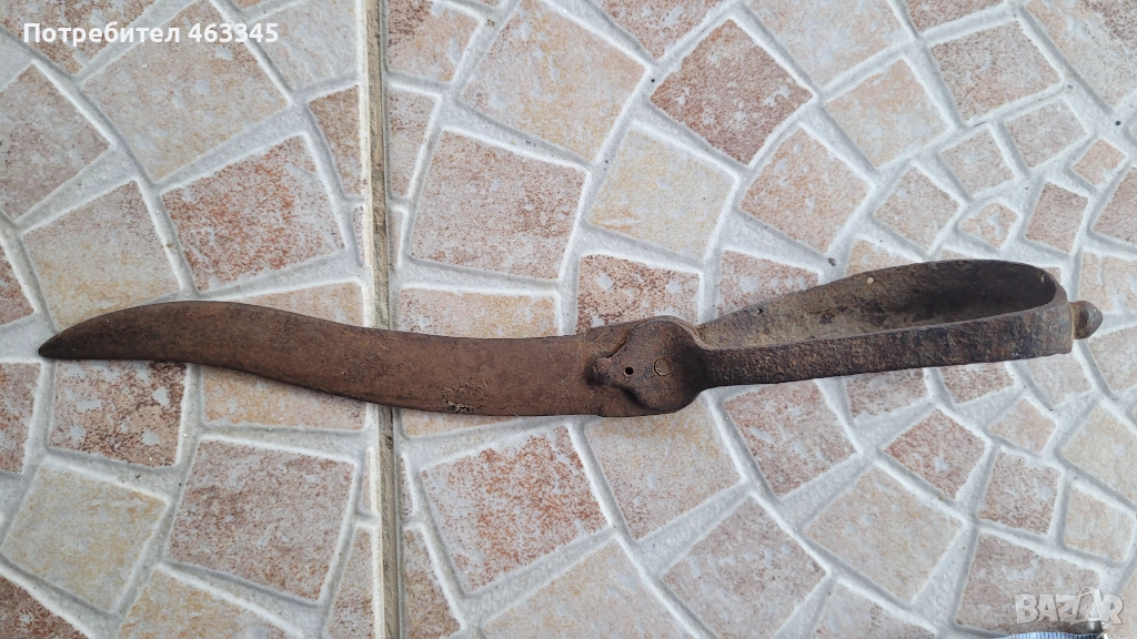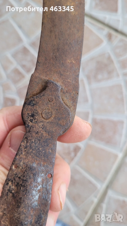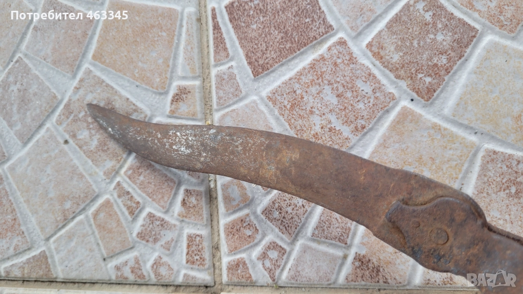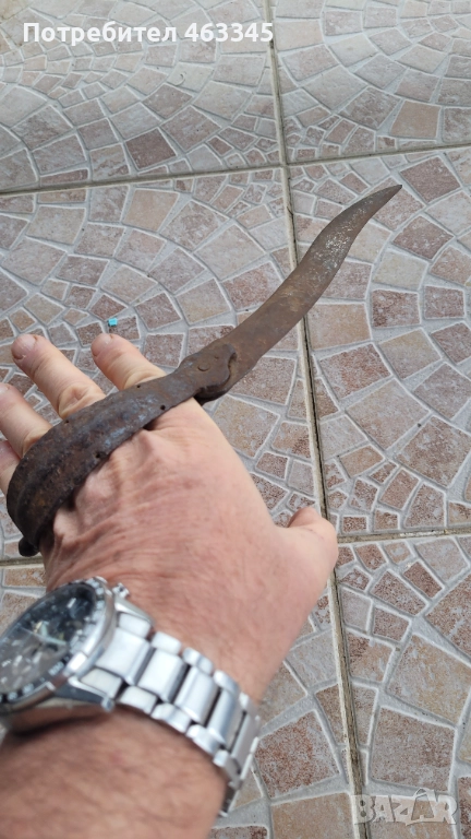 Много рядко оръжие - индийска бичва от 18-ти век - датирана 1778 г. Ножът е изработен изцяло от желязо, включително дтъжката и гарда, като последните са от ковко желязо, а острието е стоманено. Желязото е цялото покрито с ръжда, но е без дълбоки язви. Непочиствана, незаточвана.