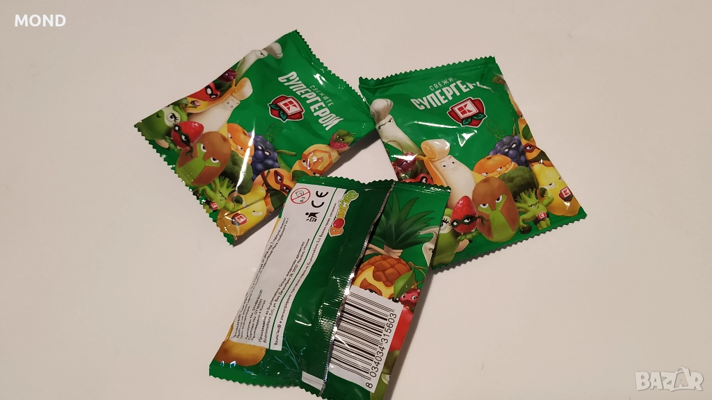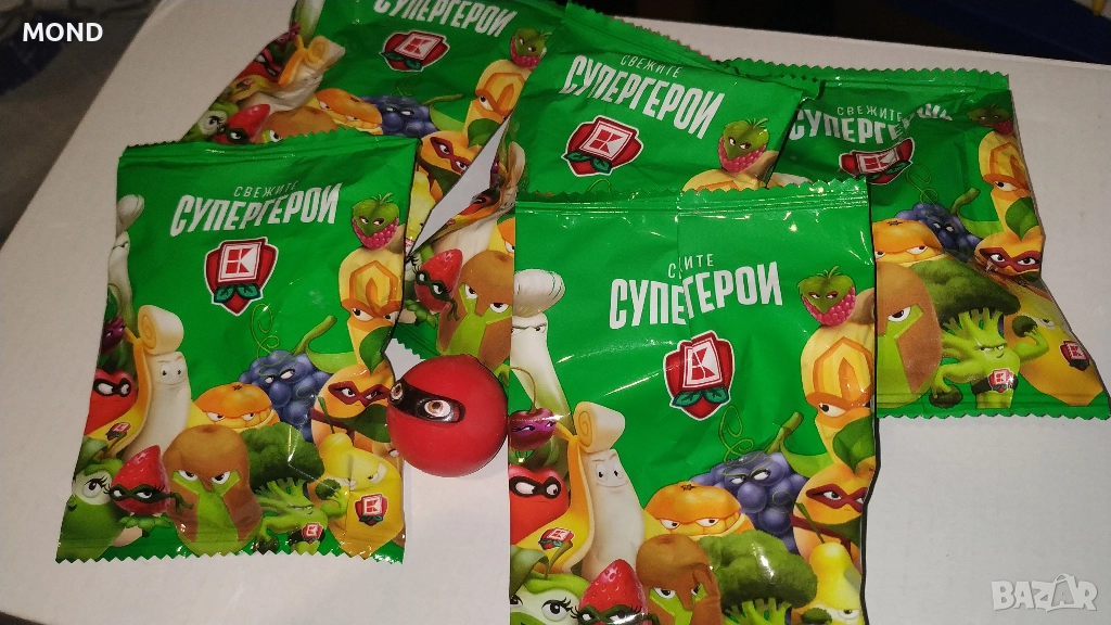 Предлагам 5 неразопаковани пакета част от поредицата Свежите Супергерой (топчовци) на Кауфланд, колекция от 2019 година. Стара детска колекция, от която рядко се откриват неразопаковани пакетчета.