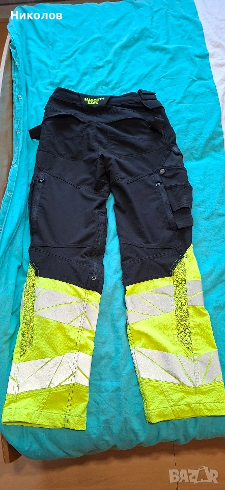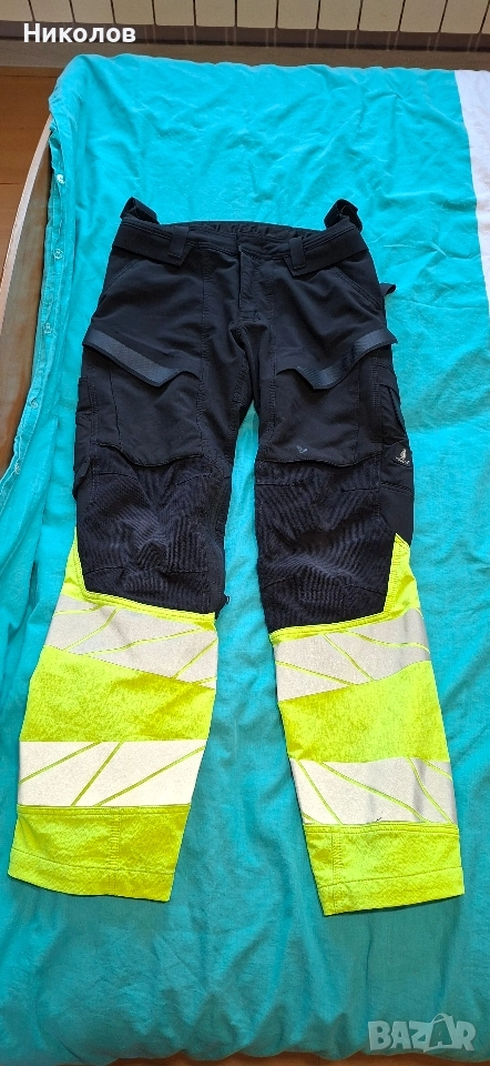 Флуоресцентен контрастен цвят и светлоотразителни ленти. С водоотблъскващо покритие. Двуцветен. Четирипосочно разтеглива материя, която е лека и издръжлива. Двойно зашити шевове на крачола и чатала. Ниска талия. Скрито закопчаване с копчета. Ергономично оформен крачол. Свалящи се джобове за кобури. Закопчаване с копчета тик-так на най-вътрешния висящ джоб за инструменти. Джоб за кобур с подплатен джоб за телефон и закопчаване с магнит. Примки за колан. Каишка за инструменти от двете страни на талията. Закопчаване с цип. Предни джобове. Задни джобове с подсилване и капаци. Скрити каишки за инструменти от двете страни. Копче (свалящо се) за закрепване на държач за нож. Джоб за линийка с подсилване от Kevlar®. Джобове с капаци на бедрата. Джобове за наколенки от двупосочно разтеглива материя CORDURA ® с вентилация. Лесно индивидуално регулиране на височината на джоба за наколенки. Джоб на бедрото с подплатен джоб за телефон, закопчаване с магнит и вграден джоб за лична карта. Вертикален цип за вентилация на задната част на бедрото. С печатни ефекти. Всяка стандартна дължина на крачола може да се удължи с 3 см чрез освобождаване на вътрешните червени