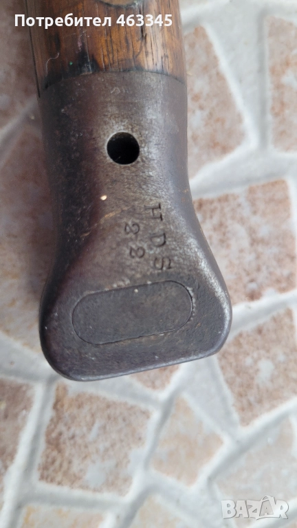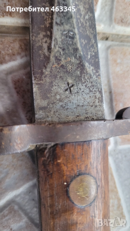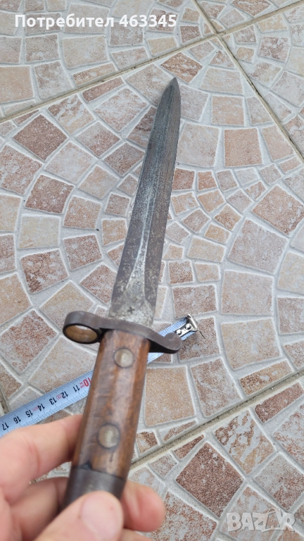 Британски щик Енфийлд от началото на 20-ти век. Щикът идва от ЮАР и е участник във Втората Англо-Бурска война. Щикът е покрит с много дебела патина, непочистван и незаточван. Множество маркировки и от двете страни. Чирените са без дървояд и са много читави, без отчупено и наранено. Продава се без ножна