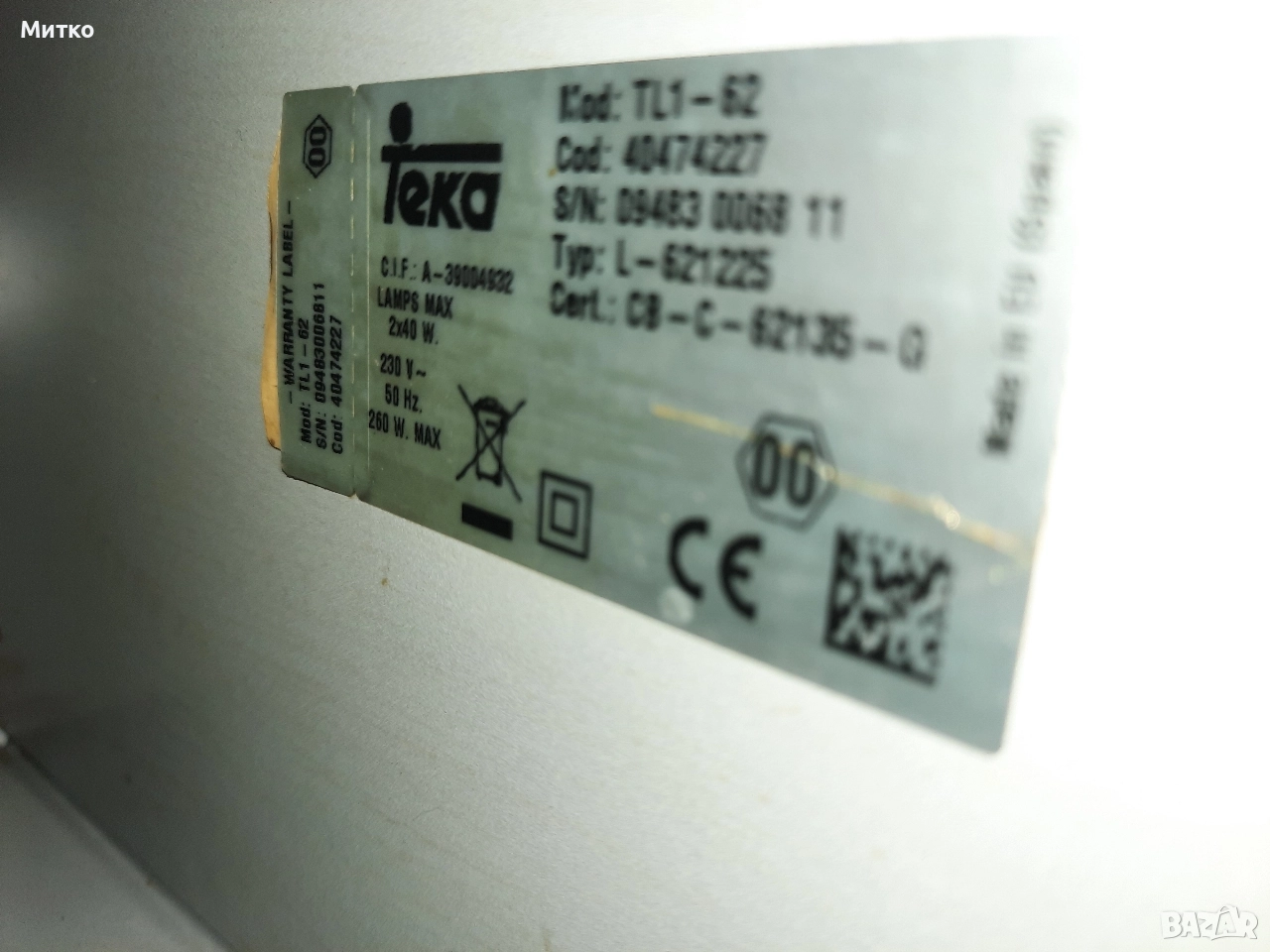 Здрав работещ само на една степен абсорбатор марка TEKA модел TL1-62 Абсорбира е за вграждане. Размерите му ги има на снимката.Работи само на една степен.Трябва евентуално да се отремонтира за да работят и двете степени.Има и осветление.За това се продава като за части.
