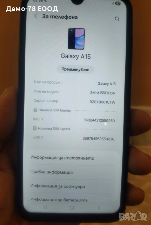 Samsung Galaxy A15, снимка 1 - Samsung - 52867014 Samsung Galaxy A15, снимка 2 - Samsung - 52867014 Samsung Galaxy A15, снимка 3 - Samsung - 52867014 Samsung Galaxy A15, снимка 4 - Samsung - 52867014 Samsung Galaxy A15, снимка 5 - Samsung - 52867014 Samsung Galaxy A15, снимка 6 - Samsung - 52867014 Samsung Galaxy A15, снимка 7 - Samsung - 52867014 Samsung Galaxy A15, снимка 8 - Samsung - 52867014 Samsung Galaxy A15, снимка 9 - Samsung - 52867014 Samsung Galaxy A15, снимка 10 - Samsung - 52867014 1/10