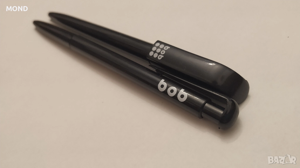 Предлагаме висок клас рекламен химикал на bob🖊. bob е мобилна услуга у нас, датираща от края на 2011 година. Познат още като "четвъртият оператор", но част от тогавашния Мтел /сега А1/. Мобилната услуга bob, преустанови предлагането през 2019 година. Химикалите са част от промоционалната кампания по откриването на мобилната услуга у на през далечната 2011-та година.