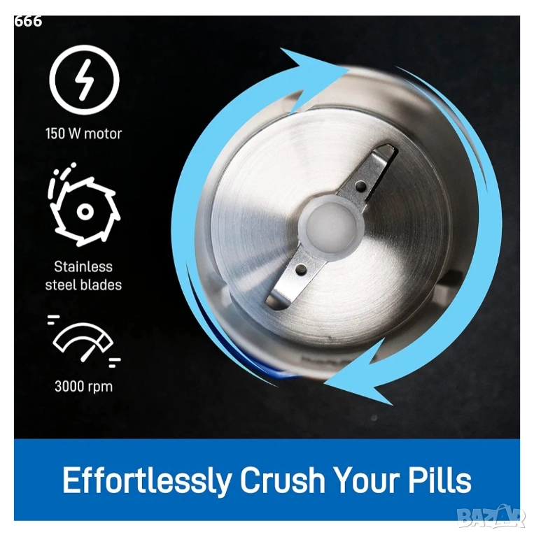 Електрическа трошачка за хапчета,кафе на зърна, подправки, цели зърна и други.