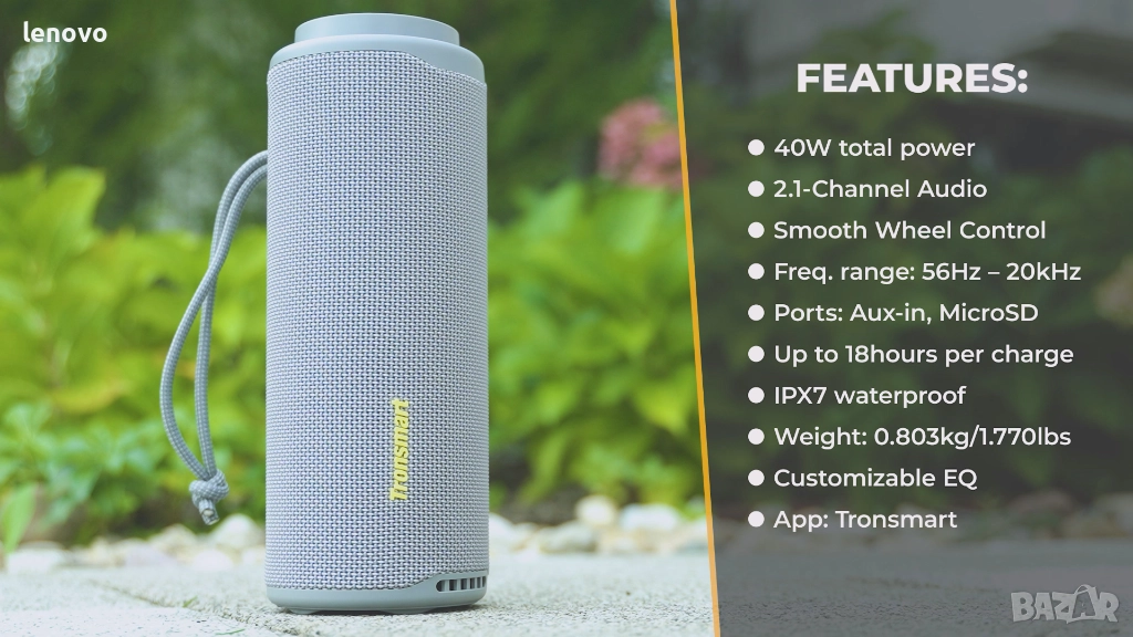 Tronsmart T8 предлага много добро съотношение цена–качество, с плътен бас, ясни среди и достатъчна сила на звука за малки и средни помещения, тераса или излет сред природата.