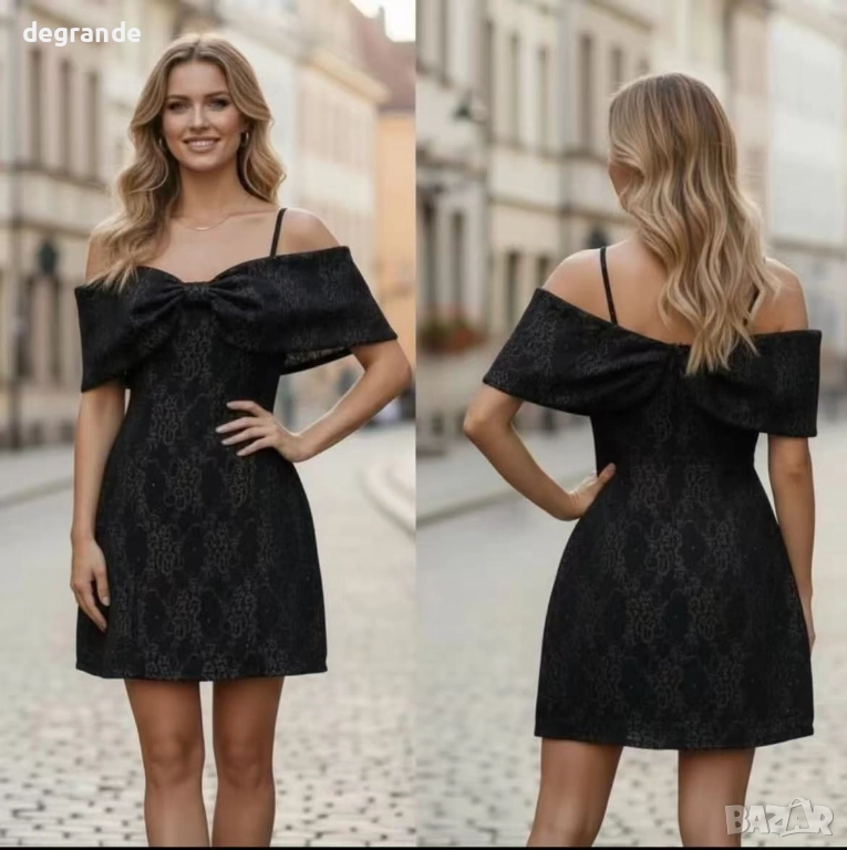 Кукленски модел дамска рокля с огромна панделка на раменете