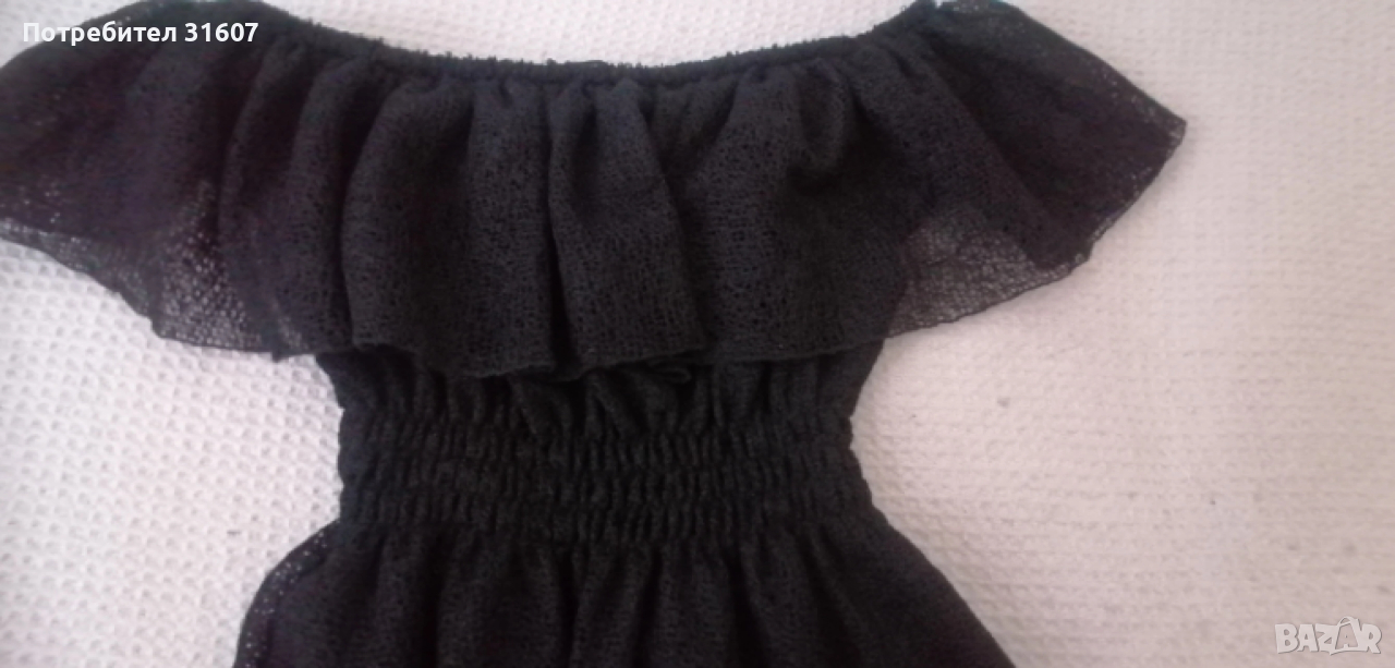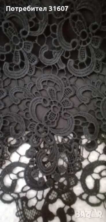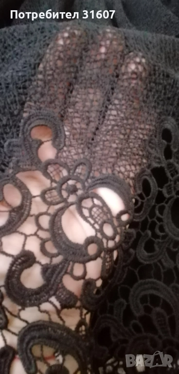 Красива, черна дантелена рокля на българската марка МАНУЕЛА. Паднали рамене, еластична талия и богата дантела в долната част.