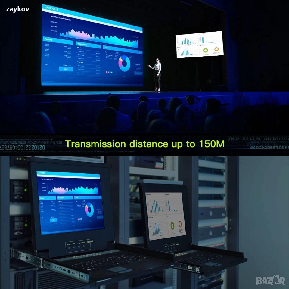 Предаване 150 м: аудио и видео сигналите се извеждат през мрежовия кабел. Разстоянията на предаване на различните видове мрежови кабели са различни, Cat5-100 м; Cat5e-120 м; Cat6/7-150 м.