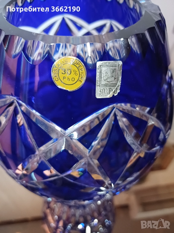 Кобалтово-синя кристална ваза → Обява 52868924